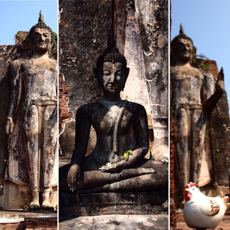 heute ging es nach einem leckeren Frühstück mit dem Fahrrad zu den Ruinen in Sukhotai. Der Start war etwas holprig da im Hotel keine Fahrräder mehr verfügbar waren aber dann ging es doch recht fix und wir wurden die 5 Minuten zum Eingang des Geländes gefahren und konnten dort bei einem Fahrradverleih kostenlos 2 Fahrräder mitnehmen. Was waren das für Geschosse! Aber sie haben uns überall mit VMAX zuverlässig hingbebracht.