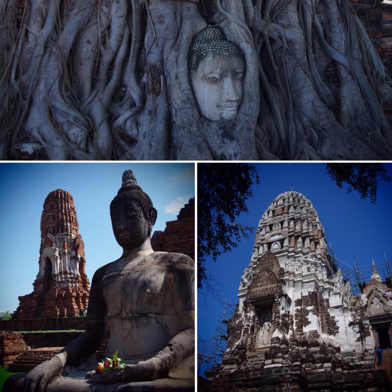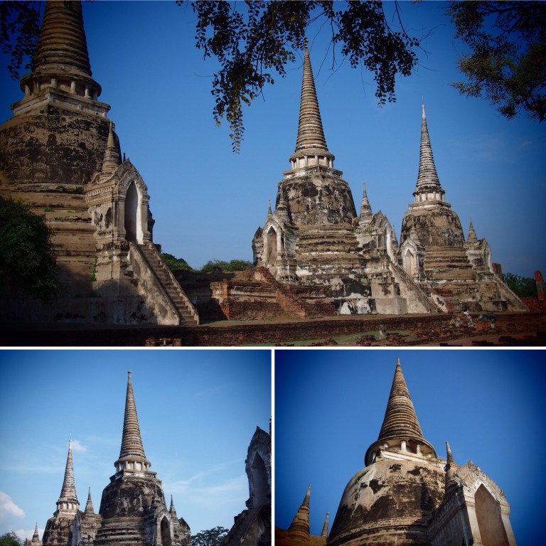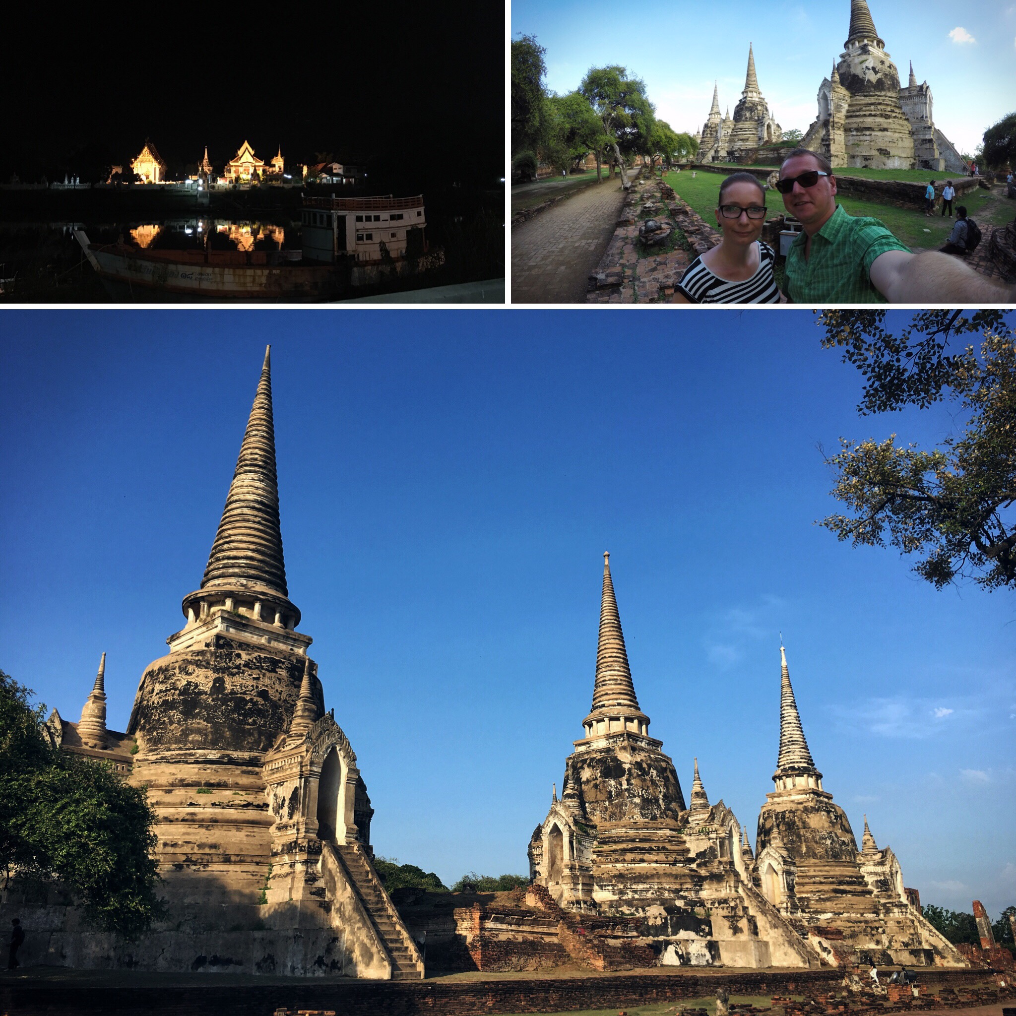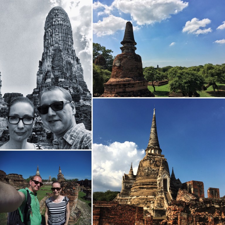 Das Gelände hier ist ähnlich gut ausgeschildert wir Sukhothai, also quasi gar nicht. Wir haben es dennoch zu den imposanten Tempelruinen geschafft und sind in Summe sicherlich 6 Stunden mit den Rädern umhergefahren bzw. haben die Ruinen besichtigt. Zwischendurch sind wir noch mit der Fähre (5 Baht 🙂 ) über den Fluss gesetzt und haben uns nach Bahntickets für die morgige Weiterreise nach Bangkok erkundigt. Zugfahren in der Frühe ohne AC und im Bummelzug war aber nix für Franzi…. ich plane schon in Gedanken die anstehenden Busfahrten in den Harz…