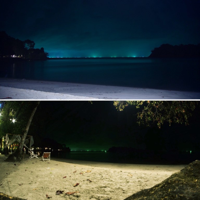 Als dann die Sonne weitestgehend untergegangen war sind wir fix ins Bungalow und dann mal zu Fuß in Richtung Kai Bae. Auf dem Weg dorthin fing es schon über dem Gebirge an zu blitzen, wir haben es aber trocken bis in das angepeilte SeaFood Restaurant geschafft.