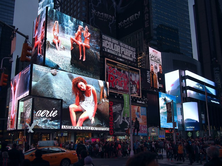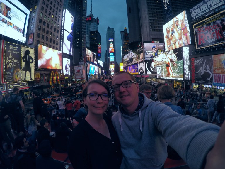Jetzt wollten wir zum Sonnenuntergang auf das Rockefeller Center und anschließend zum TimeSquare. Leider waren alle Karten für Top of the Rocks (die Aussichtsplattform) bis abends 22 Uhr schon weg. So haben wir uns welche für morgen gesichert und sind dann direkt zum TimeSquare.