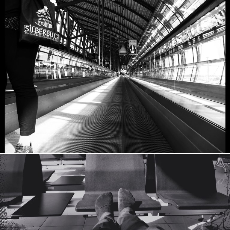 So, der erste Flug ist überstanden und war mit ca. 50min Flugzeit voll sinnlos… nun mal wieder warten auf Boarding