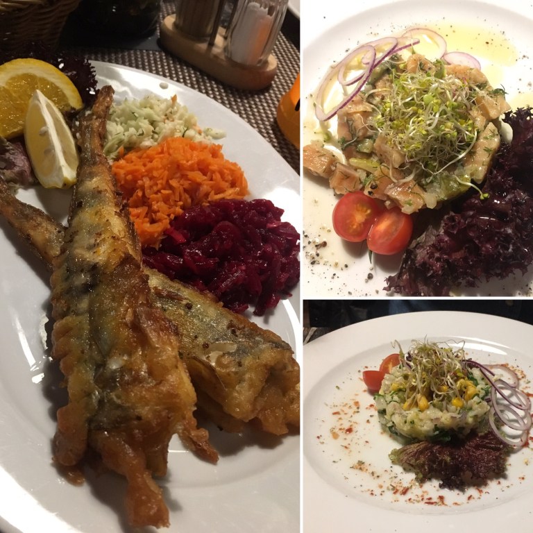 Frühstücken, Strandspaziergang bzw. Kleine Wanderung bei der wir eine Flaschenpost von Johanna gefunden haben und ich fast knietief im Sand versunken wäre… Fischessen, Wellness im Hotel und Abends wieder Fisch essen.