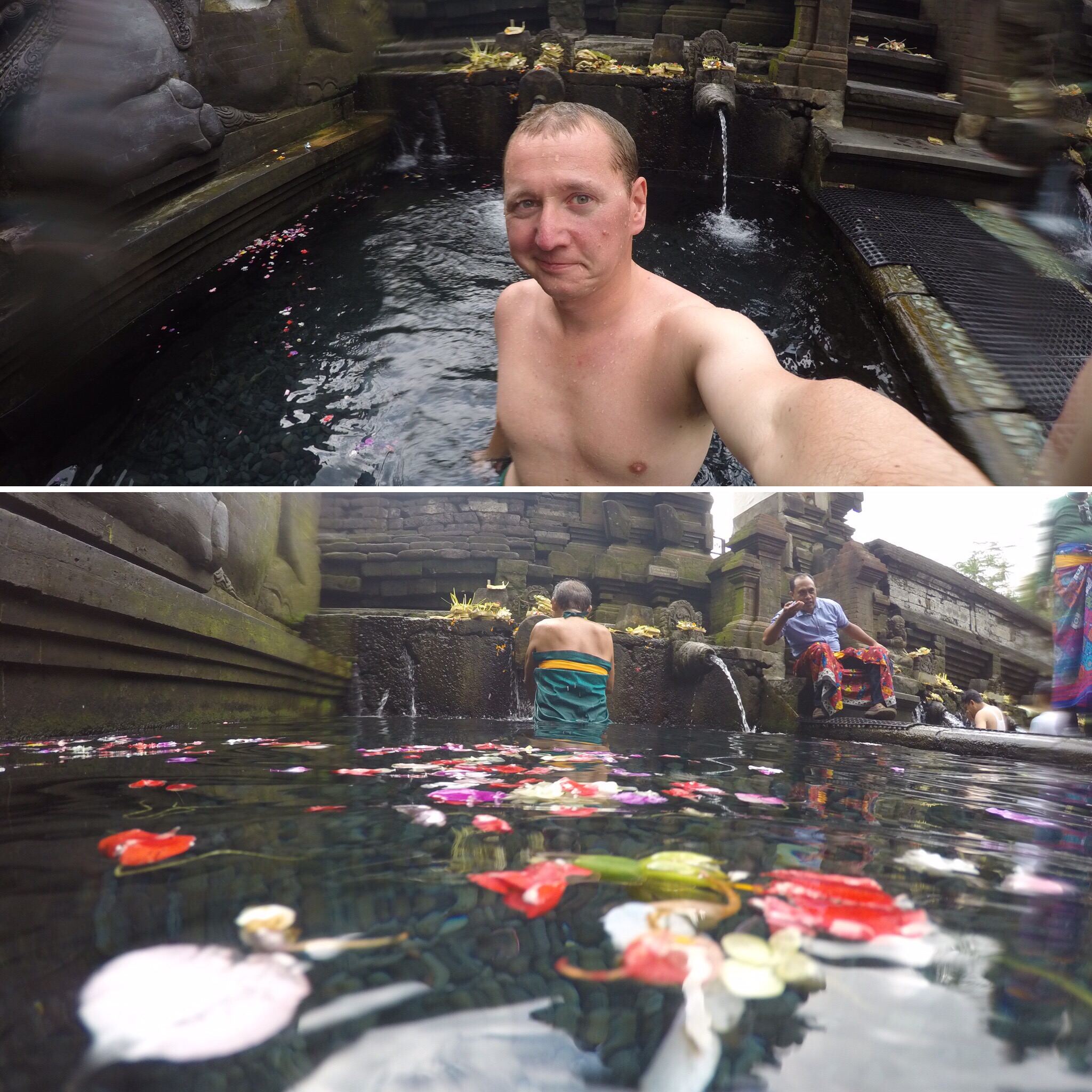 Echt netter Tempel, ich habe mir direkt auch einen Badesaron ausgeliehen und bin mit in heilige Wasser gestiegen. Jetzt sollte ich wenn ich alles richtig gemacht habe spirituell gereinigt sein und meinen Körper und Geist vor Krankheiten und der MIssgunst der Götter und Dämonen bewahrt haben. Schauen wir mal…