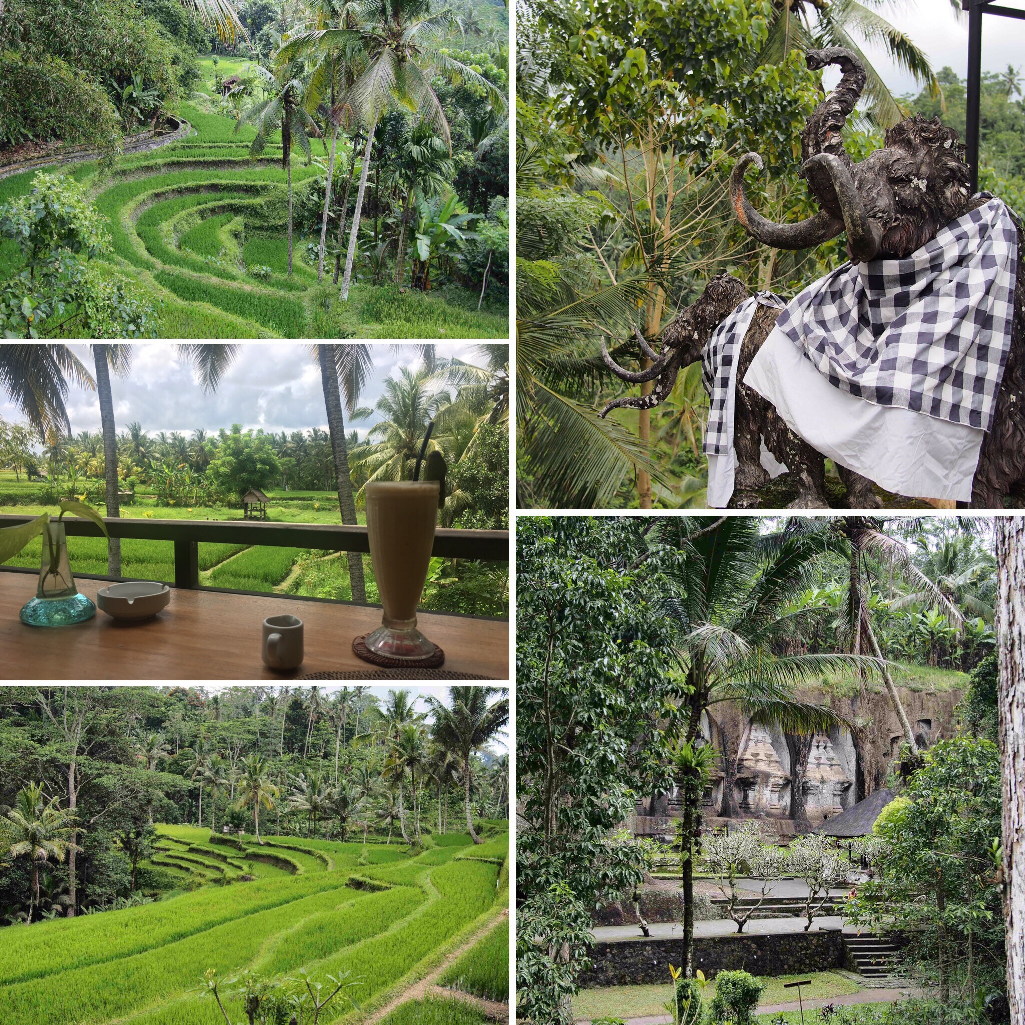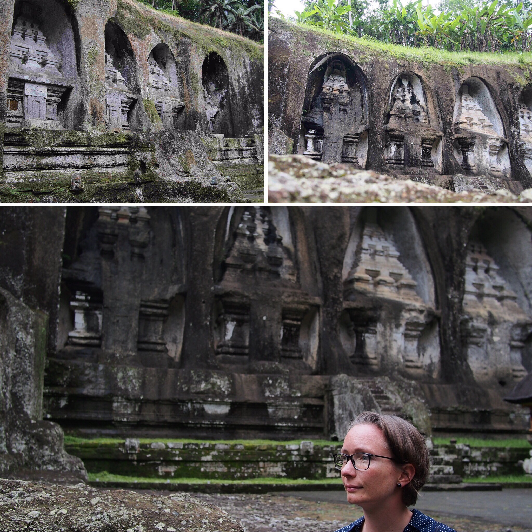Weiter ging es dann zum „Gunung Kawi“ einem Felsentempel. Auch dieser war sehr cool und architektonisch interessanter als der vorherige. Man steigt vom Eingang 300 Stufen hinab und hat dabei tolle Aussichten über Reisterrassen und Dschungel. Unten erwarten einen dann ca. 7m Hohe direkt in den Fels gehauene Skulpturen aus dem 11 Jahrhundert und eine mystische Mischung aus Dschungel und Tempel. Sehr angenehme Atmosphäre und es waren auch nicht allzu viele Touristen unterwegs…