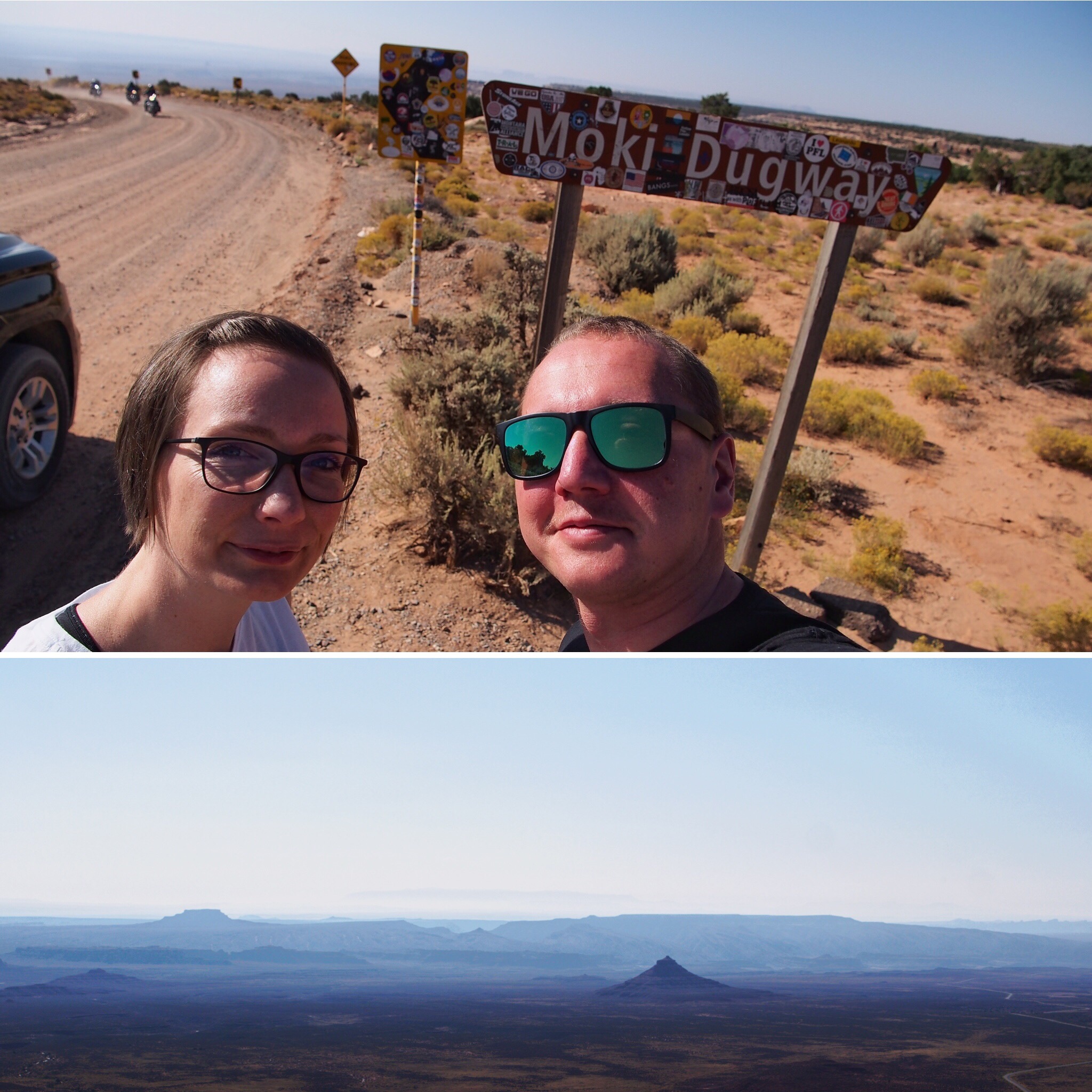 Als erstes haben wir den Muley Point angesteuert. Um diesen zu erreichen muss man erst ziemliche enge Serpentinen hoch und anschließend noch über eine Sandpiste fahren. Hier hat sich unser großer SUV das erste mal richtig bezahlt gemacht, mit einem anderen weniger geländegängig Fahrzeug kommt man zwar auch ans Ziel aber schwitzt sicherlich viel mehr dabei…