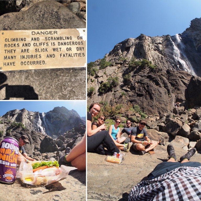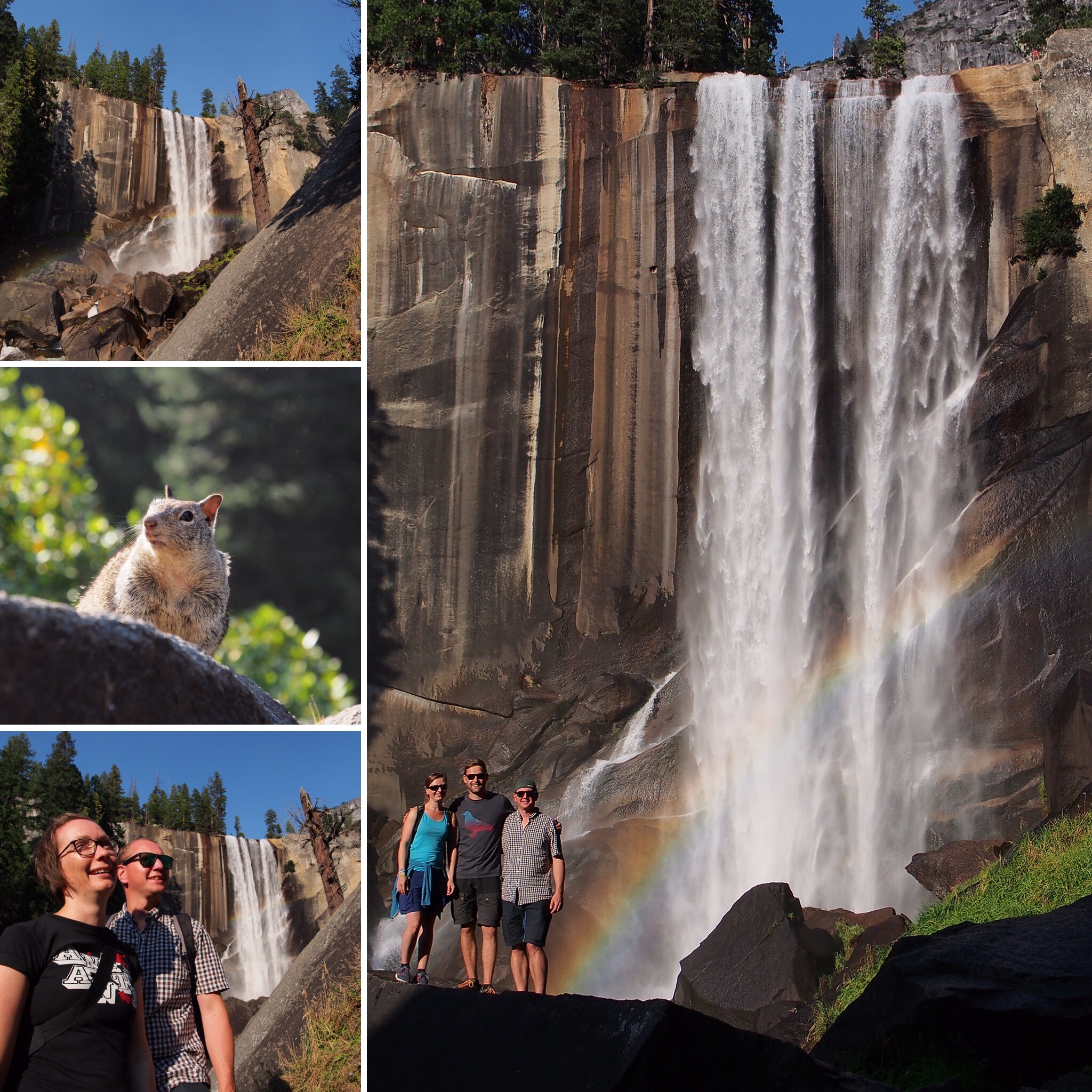 Der Blick auf den Wasserfall und den permanenten Regenbogen hat auf jeden Fall für den „Aufstieg“ entschädigt. Nach kurzem aber intensivem Fotoshooting und natürlich auch ausgiebigen Genuss des An- & Ausblicks sind wir flinken Fußes zurück zu den Autos und wollten dann eigentlich noch zum Glacier Point.
