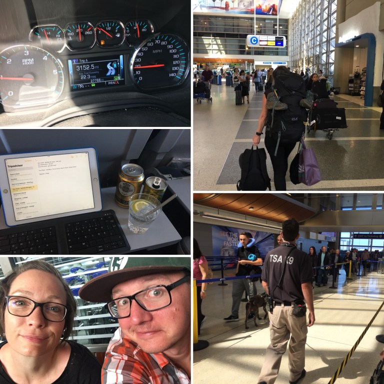 Am Security Check war dann wieder etwas Action. In der Trinkflasche die sich Franzi im Yosemite Park gekauft hat war noch zu viel Wasser und so ist diese erstmal am Check rausgeflogen. Naja etwas rum diskutiert und Zack hatten wir die unbefriedigende Lösung: Flasche austrinken und einer muss mit der leeren Flasche noch mal durch den Security Check (inklusive anstellen). Zum Glück hatten wir noch Zeit bis zum Boarding und so hat das dann auch geklappt.