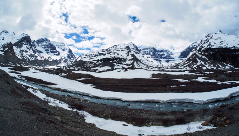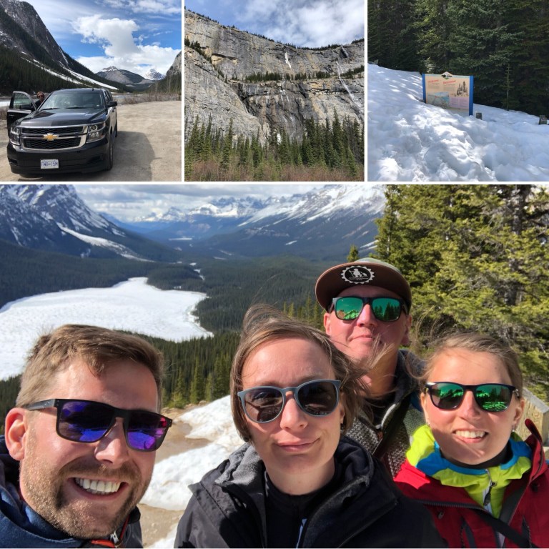 Wir sind 280km nur an riesigen Berggipfeln, Canyons, Wasserfällen, Gletschern und türkisblauen (wenn nicht gerade zugefroren) Seen vorbei gefahren und ein Fotomotiv hat das nächste gejagt. Natürlich saßen Robert und ich dieses mal hinten und haben uns standesgemäß am Männertag von den Damen „kutschieren“ lassen.