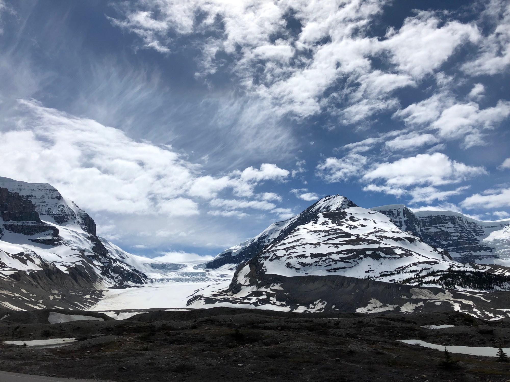 Wir sind 280km nur an riesigen Berggipfeln, Canyons, Wasserfällen, Gletschern und türkisblauen (wenn nicht gerade zugefroren) Seen vorbei gefahren und ein Fotomotiv hat das nächste gejagt. Natürlich saßen Robert und ich dieses mal hinten und haben uns standesgemäß am Männertag von den Damen „kutschieren“ lassen.