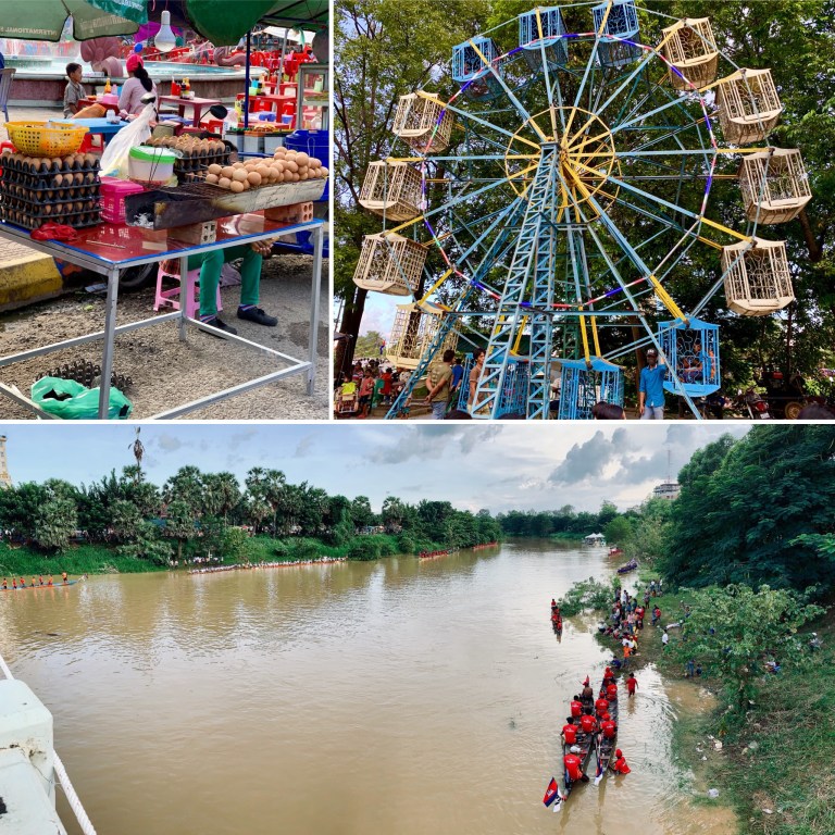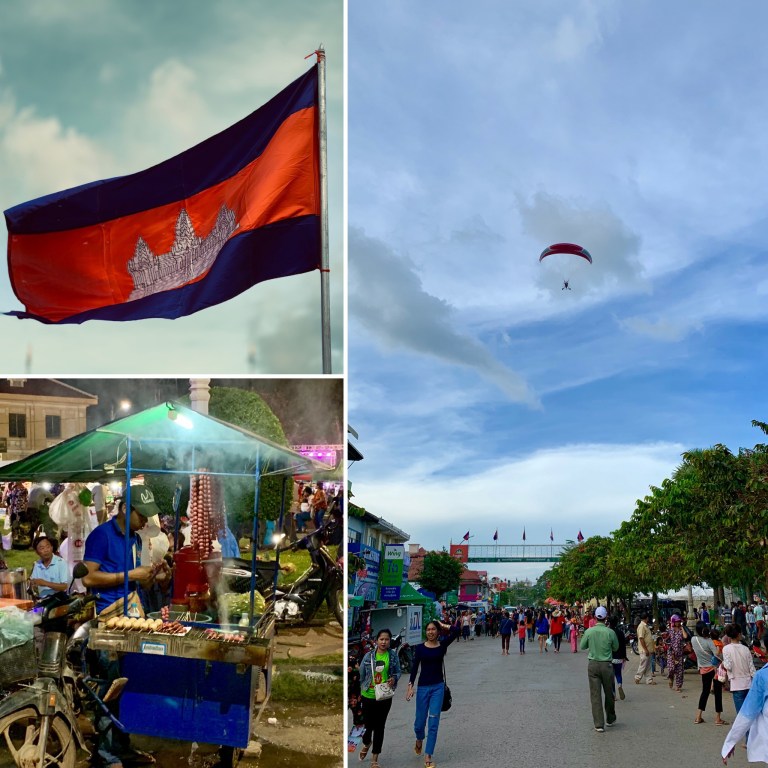 In Battambang ist gerade „water festival“ und es ist eigentlich unbeschreiblich was hier los ist. Tausende und Abertausende von Menschen, Essensstände, Rummel, Bootsrennen, Bühnen… irre. Selten so viele Menschen auf einem Haufen gesehen. Aber war nicht unangenehm hier herumzulaufen. Im Gegensatz zu Siem Reap verschlägt es nicht so viele westliche Touristen in diese Gegend und daher wird man teilweise (insbesondere von kleinen Kindern) mit großen Augen angeschaut. Außerdem winken die Kinder oft, rufen „Hello“ und freuen sich augenscheinlich sehr wenn man den Gruß erwidert.