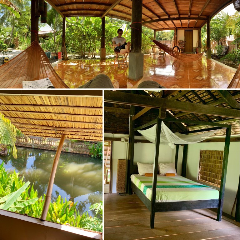 Anelyse hat uns direkt erwartet (wir haben über AirBNB gebucht) und uns das Zimmer bzw. das „Original Khmer House“ gezeigt. Wirklich nett und in einem sehr schönen Garten gelegen. Das Haus ist zwar etwas rustikal so ohne Fenster und ohne Klimaanlage aber für 2 Nächte wird es gehen und wie gesagt der Rest ist echt gut.