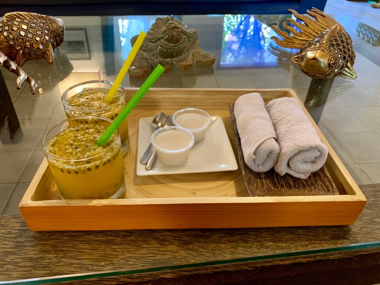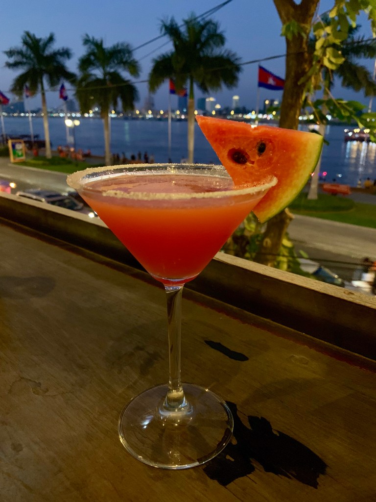 Anschließend sind wir per „PassApp Taxi“ App in Richtung Fluss gefahren. Die App ist super! Ein wenig wie Uber und man kann damit Rikschas, Tuk Tuks, Taxis und SUV Taxis mieten. Funktioniert tadellos und der Preis ist krass niedrig. Dafür müsste man sonst lange verhandeln. Hier an der Uferpromenade konnte man wieder auf andere Gedanken kommen. Es war aber auch viel los und so sind wir im Menschenstrom mit geschwommen bzw. gehumpelt (Franzi hat seit 1-2 Tagen Probleme mit einem Zeh) um uns irgendwann auf einen Sonnenuntergangs Cocktail in eine Bar zu setzten.