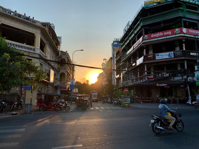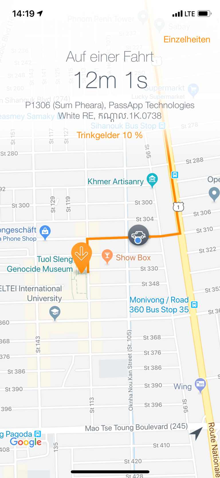 Wir sind mit einem klimatisierten Reisebus der unter anderem auch WLAN hatte gefahren, so waren die gut 4 Stunden von Kampot in die kambodschanische Hauptstadt auch kein Problem.