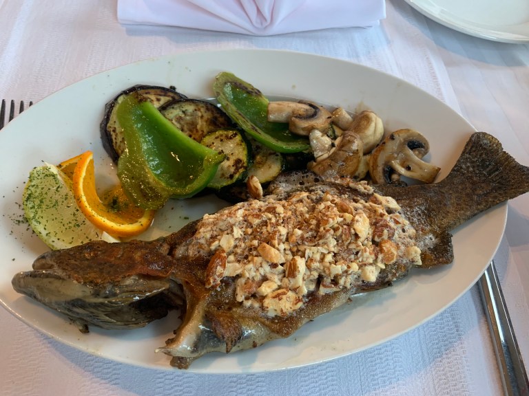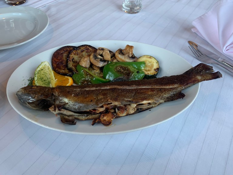 Zum Abendessen sind wir 2km zu einem Hotel gefahren. Hotel Gacka. Der Kellner war etwas durcheinander aber das Essen sehr gut! Forelle mit Speck und Pilzen gefüllt und Forelle mit Mandeln (Hallo Robert 😂). Lecker!