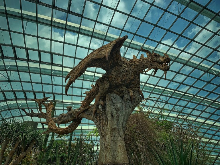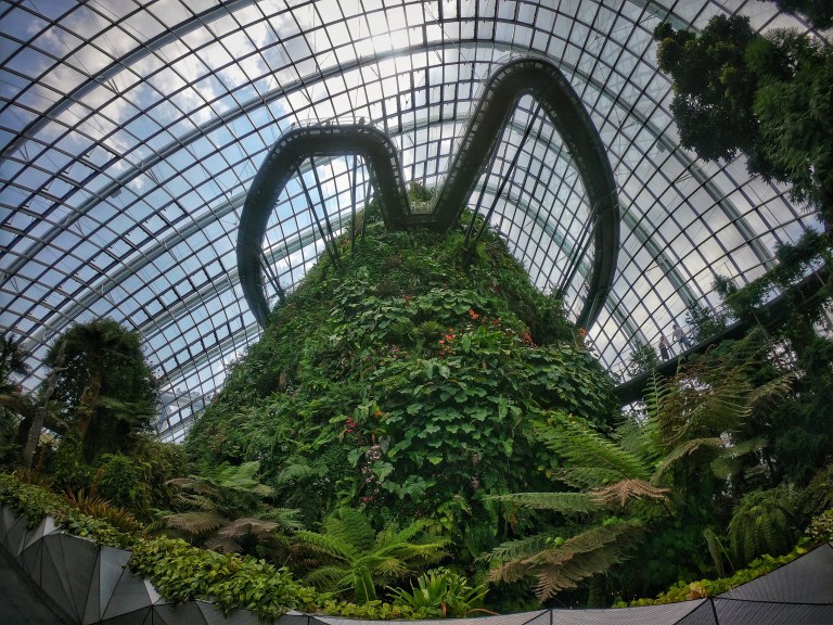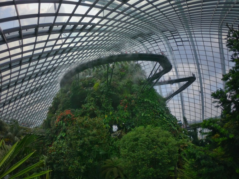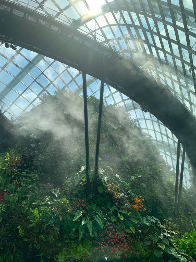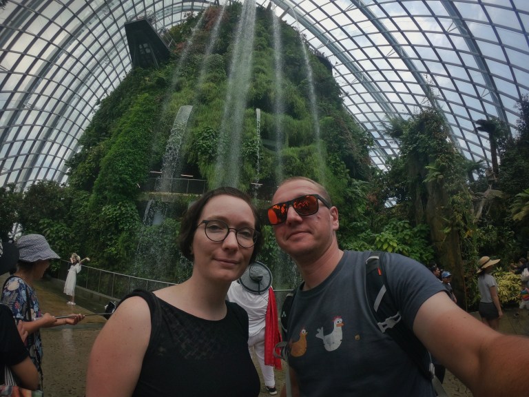 So gestärkt haben wir uns bei einer extremen Hitze auf den Weg zum Marina Bay Sands Hotel und in die „Gardens by the Bay“ gemacht. Bei den Gardens hatten wir sehr viel Glück. Als wir uns gerade Tickets kaufen wollten, kam ein junger Mann auf uns zu und hat uns zwei Tickets für den Flower Dome und den Cloud Forest geschenkt. Gruppenkarten die er über hatte.