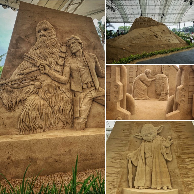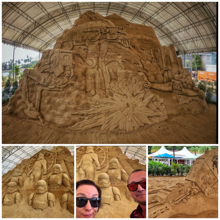 Dort angekommen ging es zur Star Wars Sandskulpturen Ausstellung die hier gerade stattfindet. Auch sehr sehenswert und vor allem beeindruckend was man alles so aus Sand zaubern kann. Rückwärts wollten wir mit einer Seilbahn, die haben allerdings keine „One-Way“ Tickets verkauft…. von daher keine Option :-(. Naja also mit dem Monorail zurück aufs Festland.