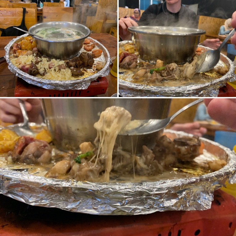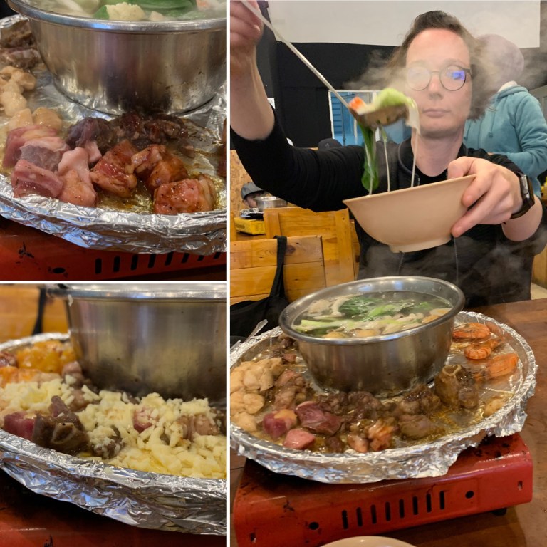 Nachdem wir alles in unserem riesigen, etwas einfachen aber schönen AirBnB erkundet und die Rucksäcke verstaut hatten war es schon Abendbrotzeit und wir sind gleich um die Ecke in das „Highland Steamboat Cheese & Grill“ gegangen. Ein kleines „All you can eat“ Restaurant im typisch asiatischen Stil. Mit HotPot und Grillplatte drum herum. Für 40 Ringgit (rund 8,50 Euro) konnte man sich hier den Bauch mit allerhand Leckereien (Gemüse, Krabben, Muscheln, Garnelen, diverse marinierte Fleischsorten, Fisch, Eis, Obst etc… ) voll schlagen. Getränke waren auch mit drin und das beste war: es gab Käse, den man dann noch über das gebratene streuen konnte… Yam Yam Yam!
