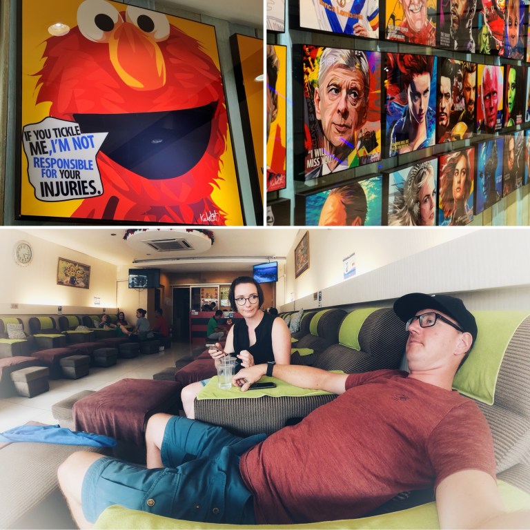 Nun stand uns der Sinn nach Wellness und wir sind wieder in die Innenstadt gefahren und haben uns dort eine Fuß und Rückenmassage gegönnt um dann durchgeknetet und entspannt zur „Heli Lounge Bar“ zu laufen. Hier haben wir uns ein Bierchen, respektive einen Mojito, gegönnt und den Blick von oben über die im Dunst (Luftverschmutzung) liegende Metropole schweifen gelassen.