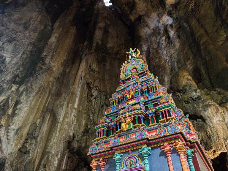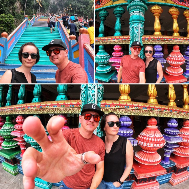 Weiter ging es dann mit einem Grab zu den „Batu Caves“. Hinduistischer Tempel in Kalkfelsen unweit von Kuala Lumpur entfernt, eigentlich noch mitten im Einzugsgebiet und daher mit Grab nur 18 Ringgit auf 20 Minuten fahrt. Der Besuch lohnt sich.
