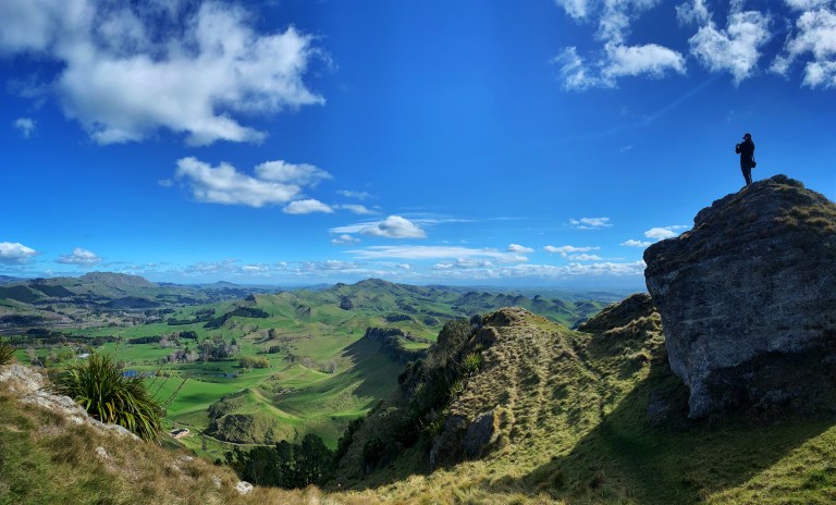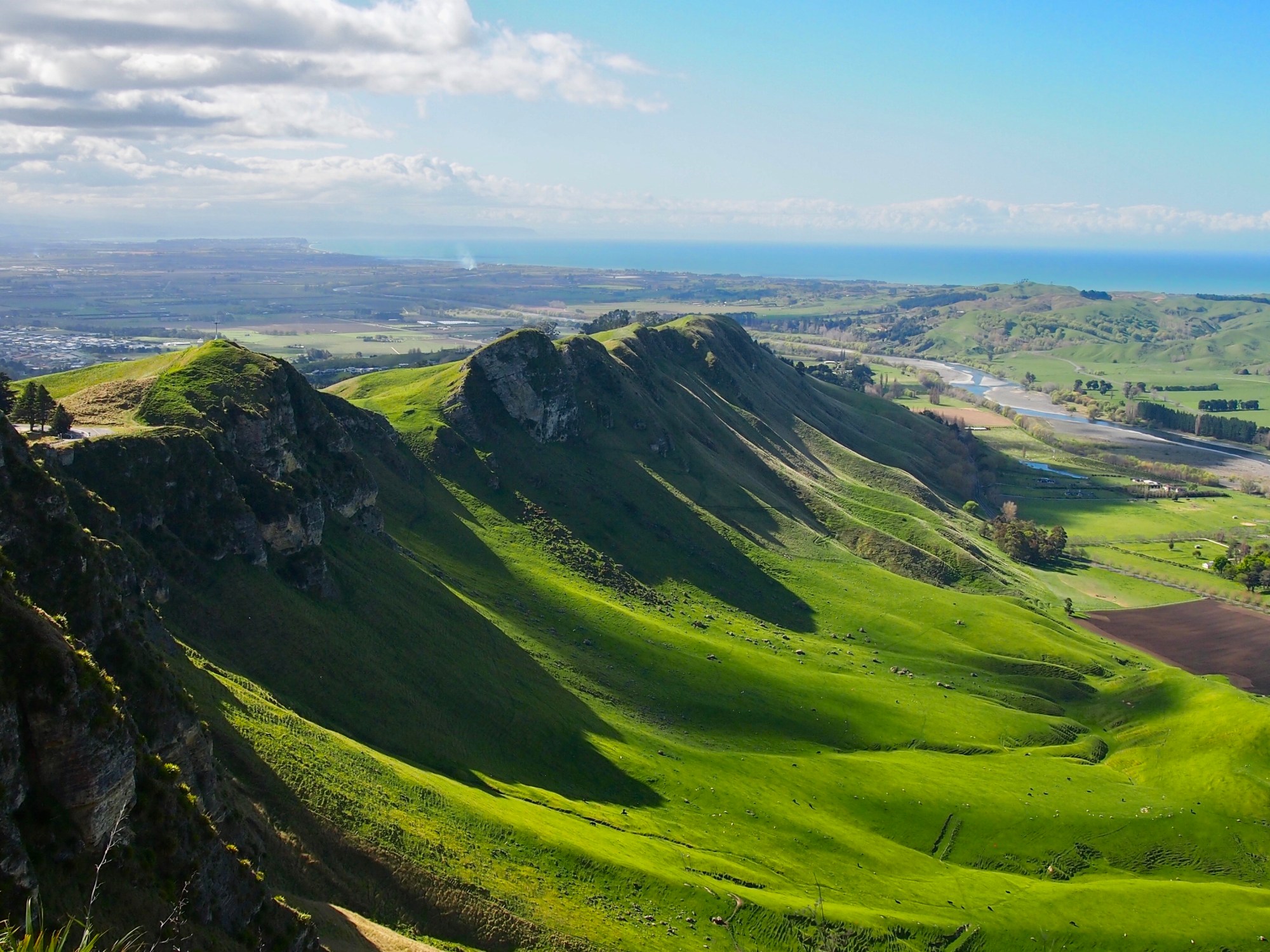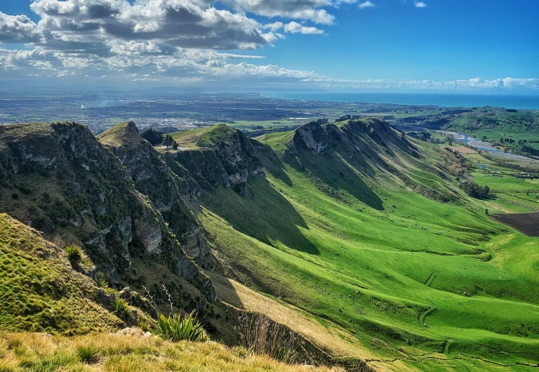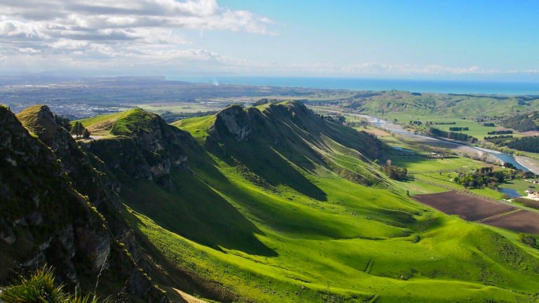 Daher ging es relativ schnell weiter zum Te Mata Peak, der groessten Erhebung hier im Umland. Wir haben relativ wenig erwartet, da wir Hügel nun schon zur Genuege gesehen haben… aber hier wurden wir nicht enttنuscht. Zum einen hat uns der Jucy kraft seiner CondoPower bis ganz nach oben gebracht und zum anderen war der Ausblick wirklich sehr schِoen (wir hatten auch wieder mal Glück mit dem Wetter…).