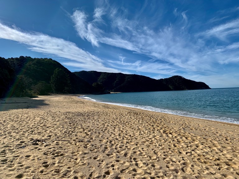 Von Totoranui ging es dann entlang der Küste auf einem sehr gut ausgebauten Wanderweg durch Regenwald und über den Strand drei Stunden bis zum Separation Point. Einem Zipfel der Insel an dem sich eine Seehundkolonie befinden soll. Es waren aber keine dort 🙄 und so sind wir nachdem wir ausgiebig den Ausblick genossen haben wieder zurück marschiert. Knapp 18 Kilometer, 6 Stunden also ganz ordentlich.