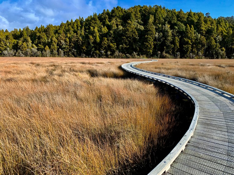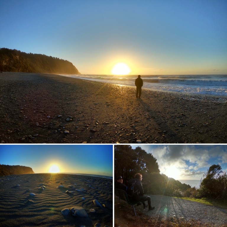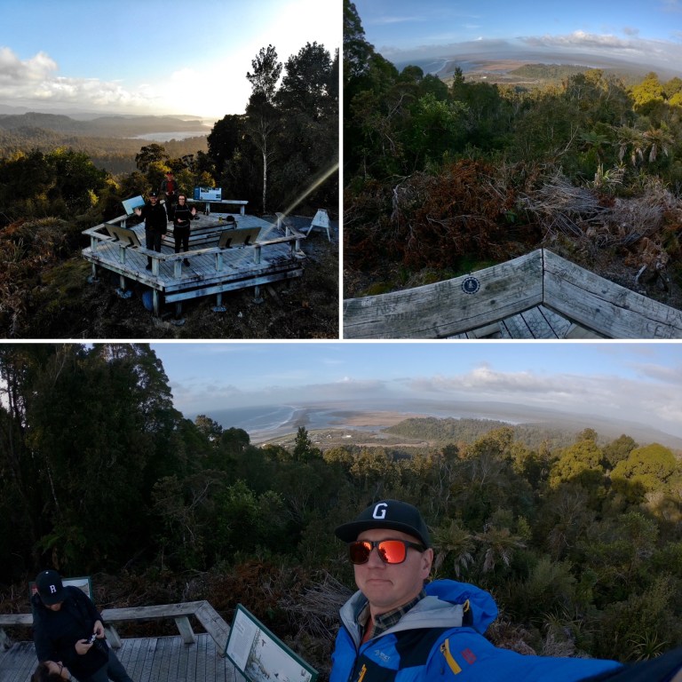 Letzter Tagespunkt auf der Liste der körperlichen Aktivitäten war der „Okarito Trig Walk“ auch wieder eine kurze Wanderung durch Kiwi Gebiet auf einen Berg von dem aus man einen sehr schönen Blick auf Okarito und die Küste hatte.