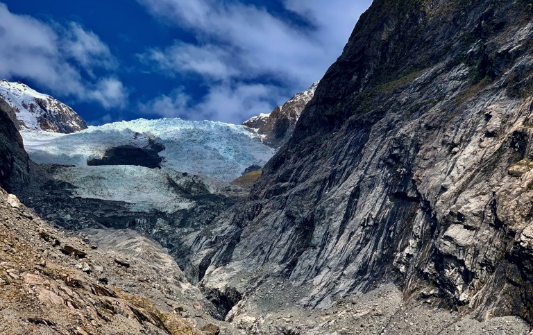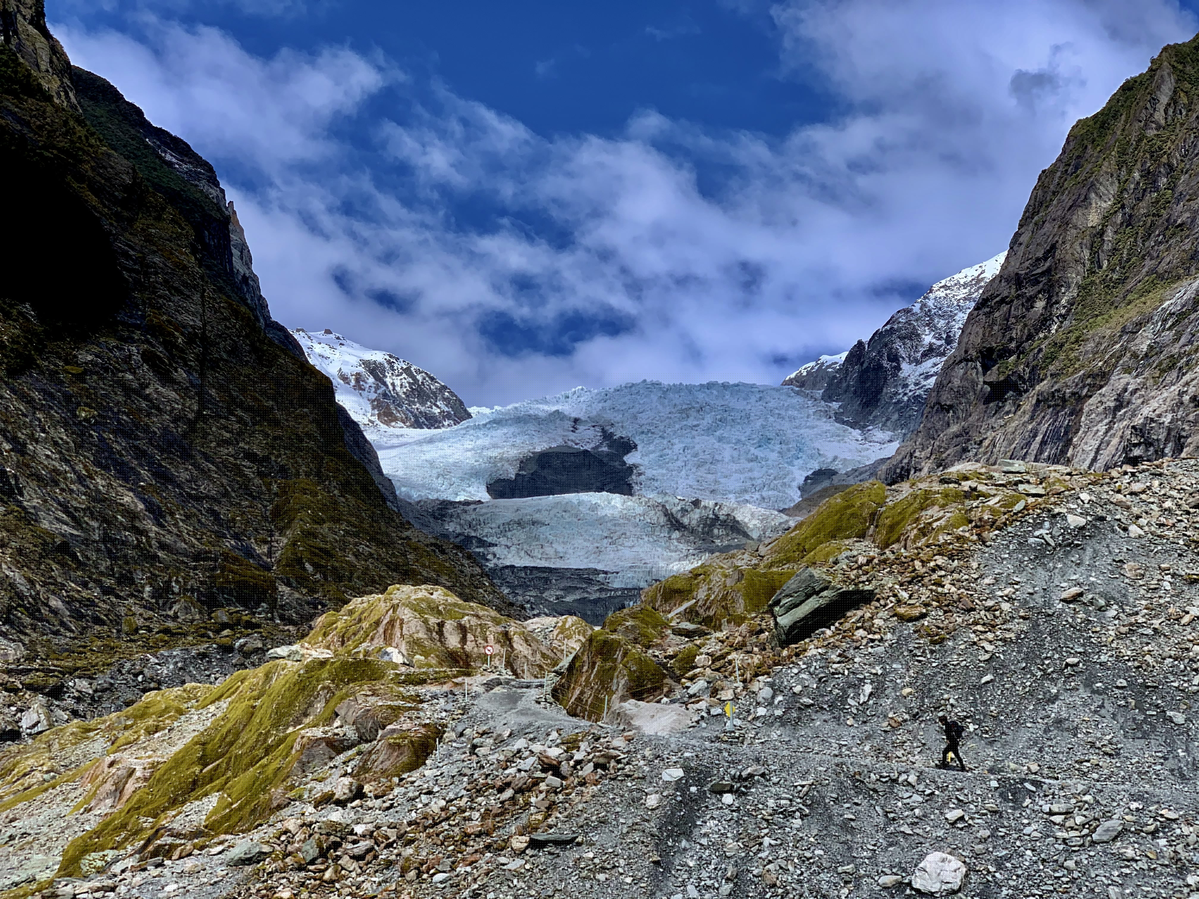 Da es nun ja erst Mittag war sind wir nur schnell ins Cottage, haben noch ein paar Sachen eingepackt und dann zum Franz Josef Gletscher gefahren. Vom hiesigen Parkplatz ging es dann auf dem Wanderweg bis zum Fuß des Gletschers bzw. so weit man eben kam… krass wie stark auch dieser Gletscher insbesondere in den letzten Jahren an Volumen verloren hat. Die Prognose aus dem Jahr 2010 für 2100 hat er jetzt schon erreicht!