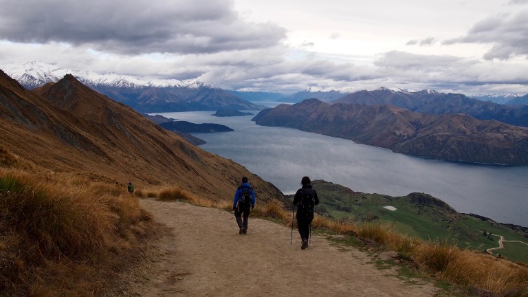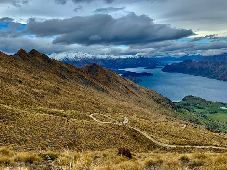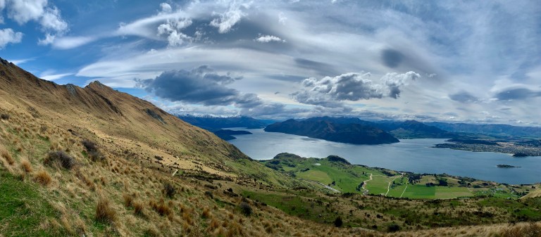 Am Parkplatz angekommen konnte man schon erahnen, was uns erwartet. Ziel war der „Roys Peak Lookout“. Knapp sieben Kilometer, aber auch über 1.000 Höhenmeter entfernt. So ging es nun in Serpentinen immer weiter den Berg hinauf mit phantastischen Ausblicken auf das Umland. Mit dem Wetter hatten wir auch wieder Glück und so sind wir begleitet von Sonnenschein und vereinzelten Wolken bis zu unserem Ziel gekommen.