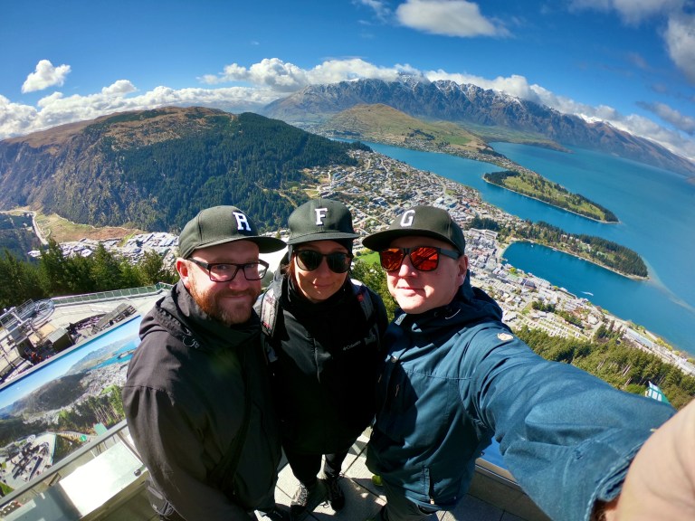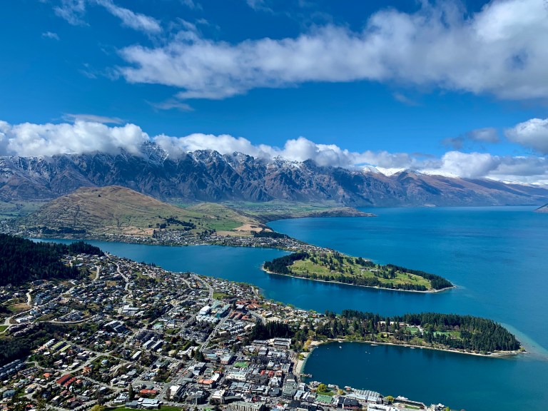 Jetzt hatten sich auch die Wolken verzogen und wir konnten die geplante Gondelfahrt angehen. Diese führte uns zu einem Berg hoch über Queenstown, von wo man einen wunderbaren Blick über die Stadt, den See und die umliegenden Berge hat. Für 44$ pro Person allerdings auch nicht ganz billig…