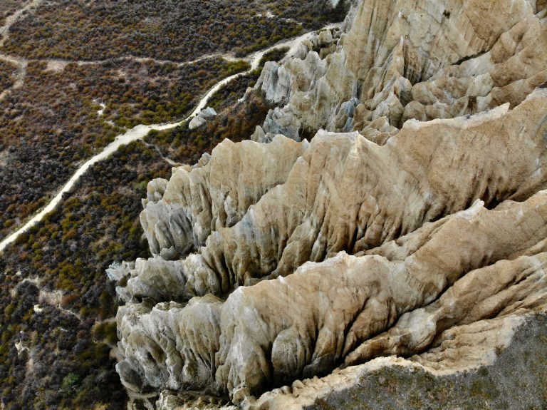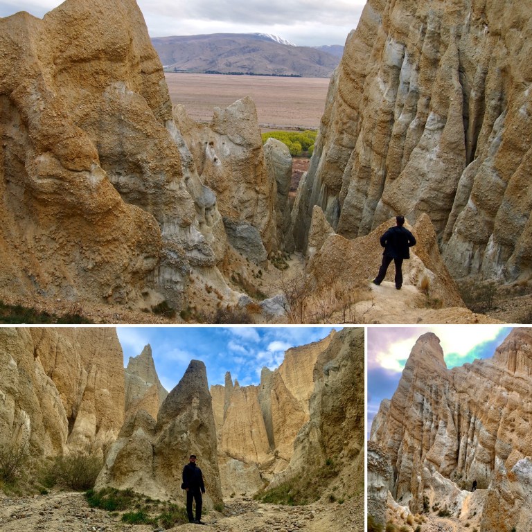 Nun war es schon später Nachmittag aber unser Tagesprogramm noch nich beendet. Jetzt ging es zu den „Clay Cliffs“ einer sehr außergewöhnlich und beeindruckenden Felsformation. In wenigen Reiseführer erwähnt und nur über einen Privatweg zu erreichen aber sehr sehenswert wenn man in der Gegend ist (und noch besser wenn man eine Drohne dabei hat).