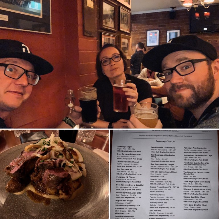 In Christchurch angekommen haben wir nur schnell das Motel bezogen, uns frisch gemacht und sind dann schnell ins „Pomeroys old Brewery Inn“ auf ein sehr leckeres Abendessen gegangen. Da dies der letzte Abend zusammen mit Robert in Neuseeland war, sind wir natürlich noch weiter gezogen. Ein wenig weiter in die Innenstadt und dort in eine kleine Craftbeer Bar (The Institution). Auch sehr zu empfehlen.
