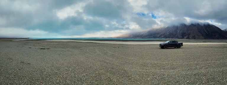 Bei leichtem Nieselregen haben wir also den Pickup beladen und sind losgedüst. Erster geplanter halt war das „Observatory“ am Lake Tekapo. Diesen halt mussten wir aber leider aufgrund von dichtem Nebel und anhaltenden Regen ausfallen lassen. Also sind wir entlang des Sees auf einer Schotterstraße (ich war Fahrer *Juhu*) immer weiter in Richtung Norden gefahren.