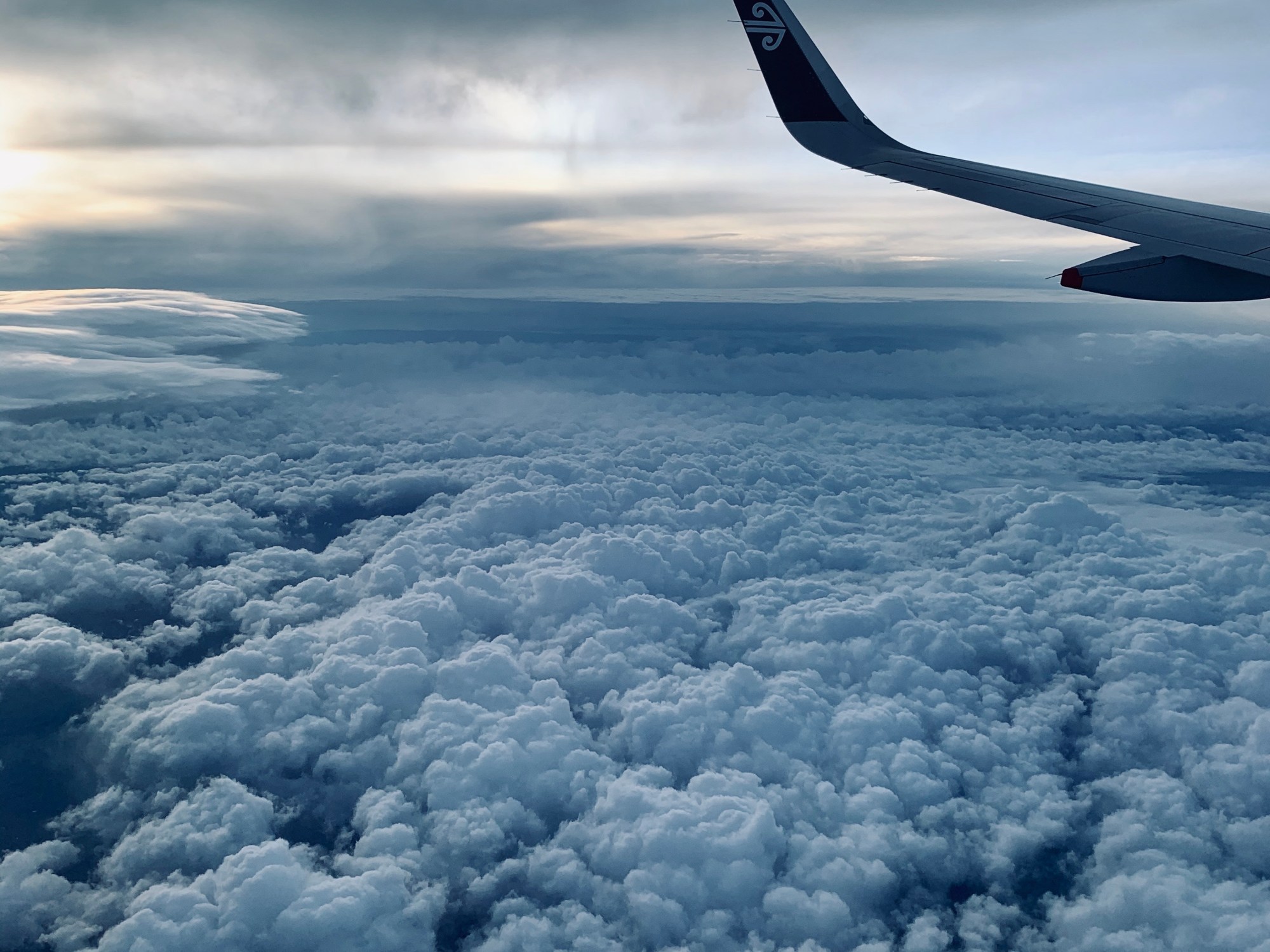 Der Flieger hatte etwas Verspätung und so wurde es das erste mal spannend an diesem Tag, wir hatten nämlich nur 1,5 Stunden Umsteigezeit in Auckland. Als der Flieger aufgesetzt hat, war es dann noch gut eine Stunde. Allerdings mussten wir auch noch vom Nationalen zum Internationalen Terminal (~ 10 Minuten Fußweg) und dort durch Pass- und Security Kontrolle. Das ging auch alles ganz fix. Bis Franzi ihr Rucksack zweimal durch den Scanner musste und auch beim zweiten Mal nicht einwandfrei durchgelaufen ist. Am Ende waren es zwei Feuerzeuge, wovon ich dann eins nehmen musste (nur eins pro Person…). So ein Blödsinn.