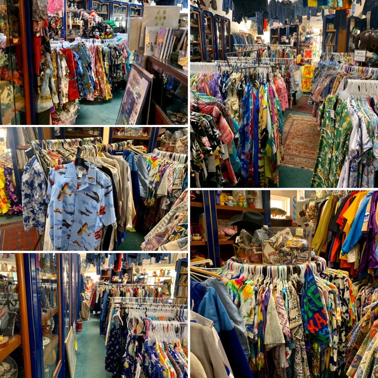Derart gestärkt sind wir um die Ecke zu einem Laden, der Hawaiihemden verkauft. Second Hand und neue. Ein sehr lustiger Laden, vollgestopft mit tausenden Hawaiihemden und anderem Krempel. Allerdings auch gar nicht mal so billig… ein paar wenige gab es für 20$ aber dann ging es preislich steil nach oben in die 50er bis 70er Marke… also keine Hawaiihemden für uns heute.