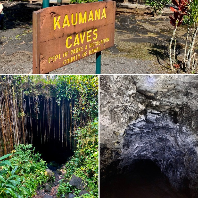 Von hier ging es weiter zu den Kaumana Caves (auch direkt bei Hilo)… Diese sind zwei Höhlen, welche durch Lavaströme entstanden sind… also sind wir mit Taschenlampen bewaffnet hinab gestiegen und direkt in die größere Höhle rein. Die Ausmaße sind schon beeindruckend, wenn man bedenkt, dass dies alles durch Lava entstanden ist… Die Höhle wurde nach hinten immer schmaler und ich dachte schon, man kommt nicht weiter. Wenn man etwas klettert und krabbelt, geht es dann doch in einen wieder deutlich größeren Höhlenabschnitt. Schon ein komisches Gefühl, hier so rumzulaufen. Wenn man die Taschenlampe ausgemacht hat, war es zapfenduster und man hat überhaupt nichts mehr gesehen… ganz alleine so in der Finsternis (Franzi hat sich das Gekrabbel erspart), war das schon ein komisches Gefühl. Naja zumindest gab es kein Getier in der Höhle und der Besuch war zwar recht kurz, aber echt cool.