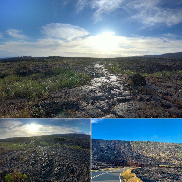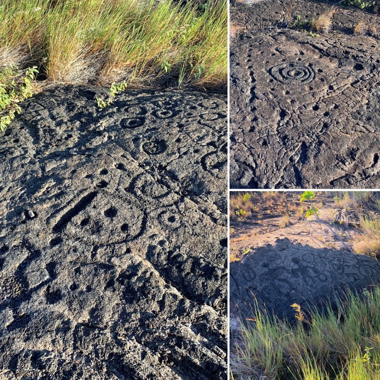 Nächstes Ziel war eine Lavatube im Volcano Nationalpark (in dem wir schon einmal waren). Leider war diese aber geschlossen… So mussten wir mal wieder umplanen und haben uns somit für zwei kleine Spaziergänge hier im Park entschieden. Einer führte uns zu Petroglyphen, welche von den Ureinwohnern in die Lava geritzt bzw. gemeißelt wurden. Ganz nett, wenn man einmal hier ist, oder sich außerordentlich für so etwas interessiert – sonst aber eher unspektakulär.