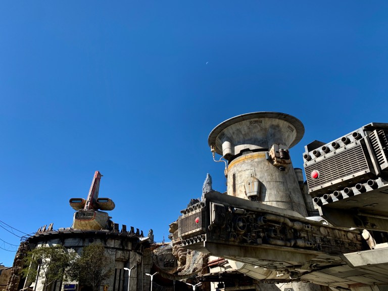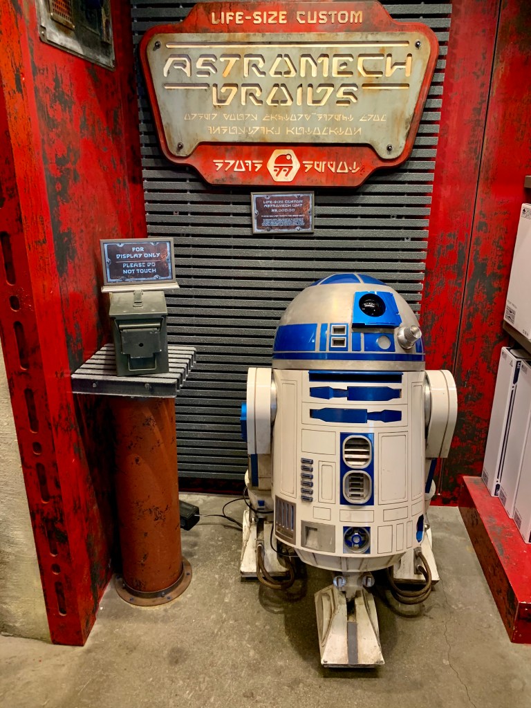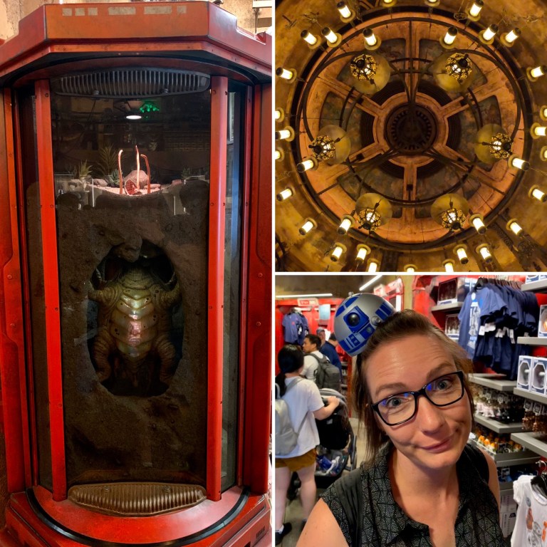 Nach dem Ride sind wir noch ausgiebig durch den Bereich geschlendert und haben die auch sehr schön gestalteten Souvenirshops (quasi jedes Haus ist einer) durchstreift. Hier kann man auch alles kaufen. Eigenes Laserschwert zusammenbauen und kaufen? Eigenen R2-D2 artigen Droiden aus Komponenten zusammenbauen und mit einem Chip das Verhalten und die Stimme des Roboters anpassen? Alles kein Thema! Dementsprechend sind hier auch viele Leute mit großen Beuteln und Kartons rum gelaufen… was die hier an Kohle lassen! Irre.