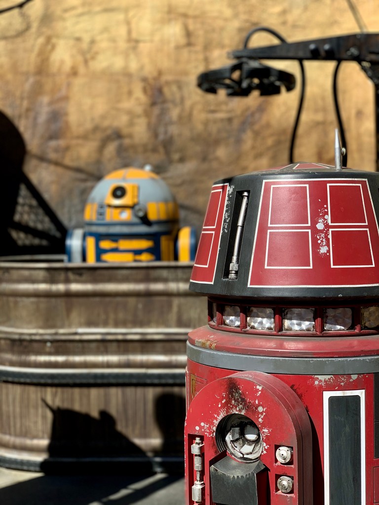 Ok, wir sind aber erst einmal straight zum Star Wars Bereich gegangen. Ein recht großer Bereich, der sehr detailreich im Stil einer Wüstenstadt im Star Wars Universum (alle Hardcore Fans werden mich für diese Formulierung steinigen wollen…) gestaltet ist. Echt super gemacht und absolut sehenswert. Hier stand aber vor Erkundung der Stadt erst einmal der Galaxy Edge Ride auf dem Programm, eine Art interaktive Achterbahn. Wie überall steht man erst einmal an, meistens lohnt es sich dann aber.