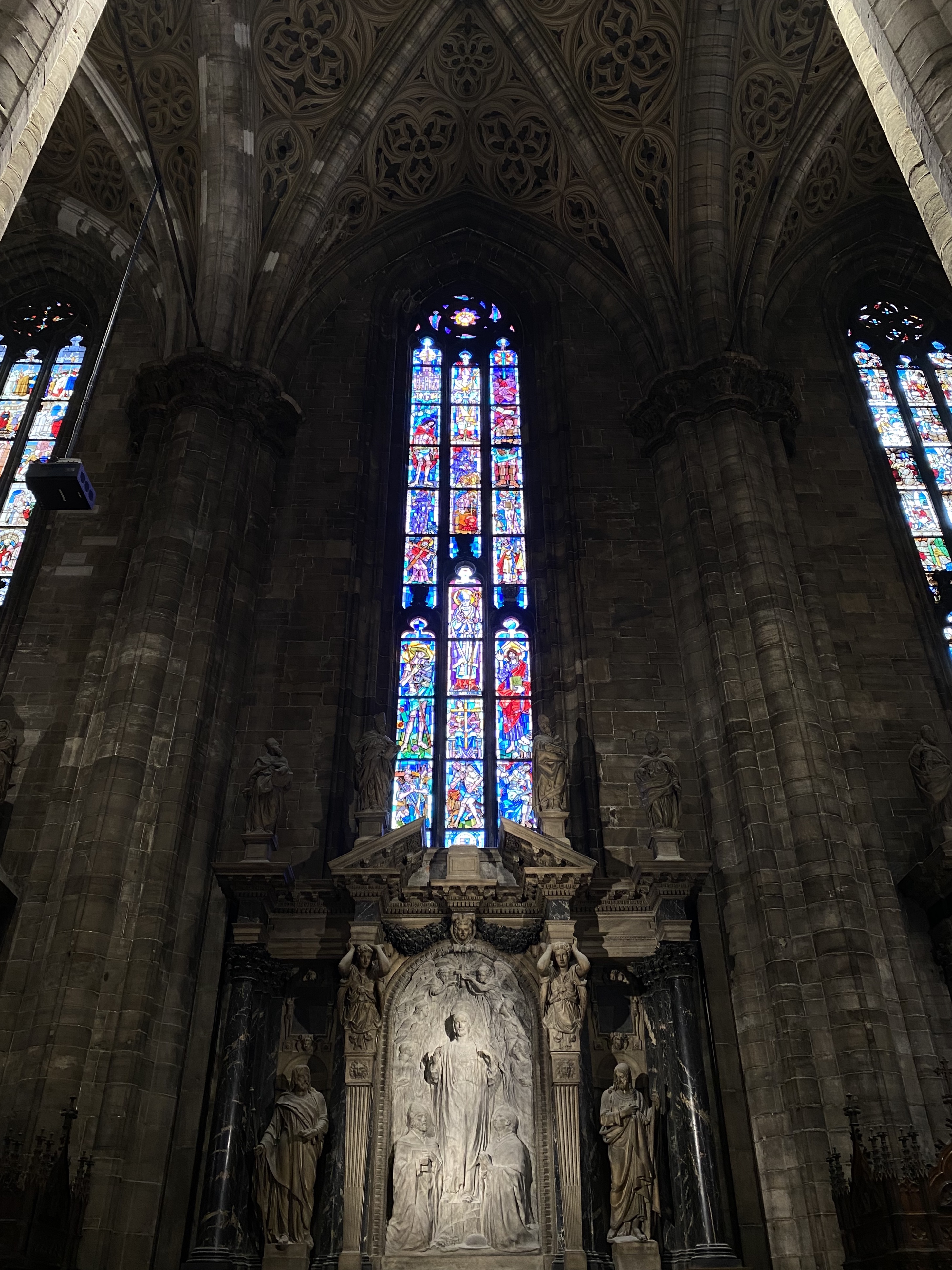 Anschließend stand die Kathedrale auf dem Programm, erst von außen und dann nach etwas suchen wo es Tickets gibt auch von innen. Echt groß das Ding und auf jeden Fall sehenswert. 3€ kostet der Eintritt wenn man nur in die Kathedrale will und nicht auch die Türme. Interessant war das durch Bauarbeiten ein Teil außen mit Gerüsten verdeckt war und an diesem fette Werbung für irgendwelche Modelabel etc.. präsentiert wurde. Werbung und Kirche ist mir so noch nie begegnet.