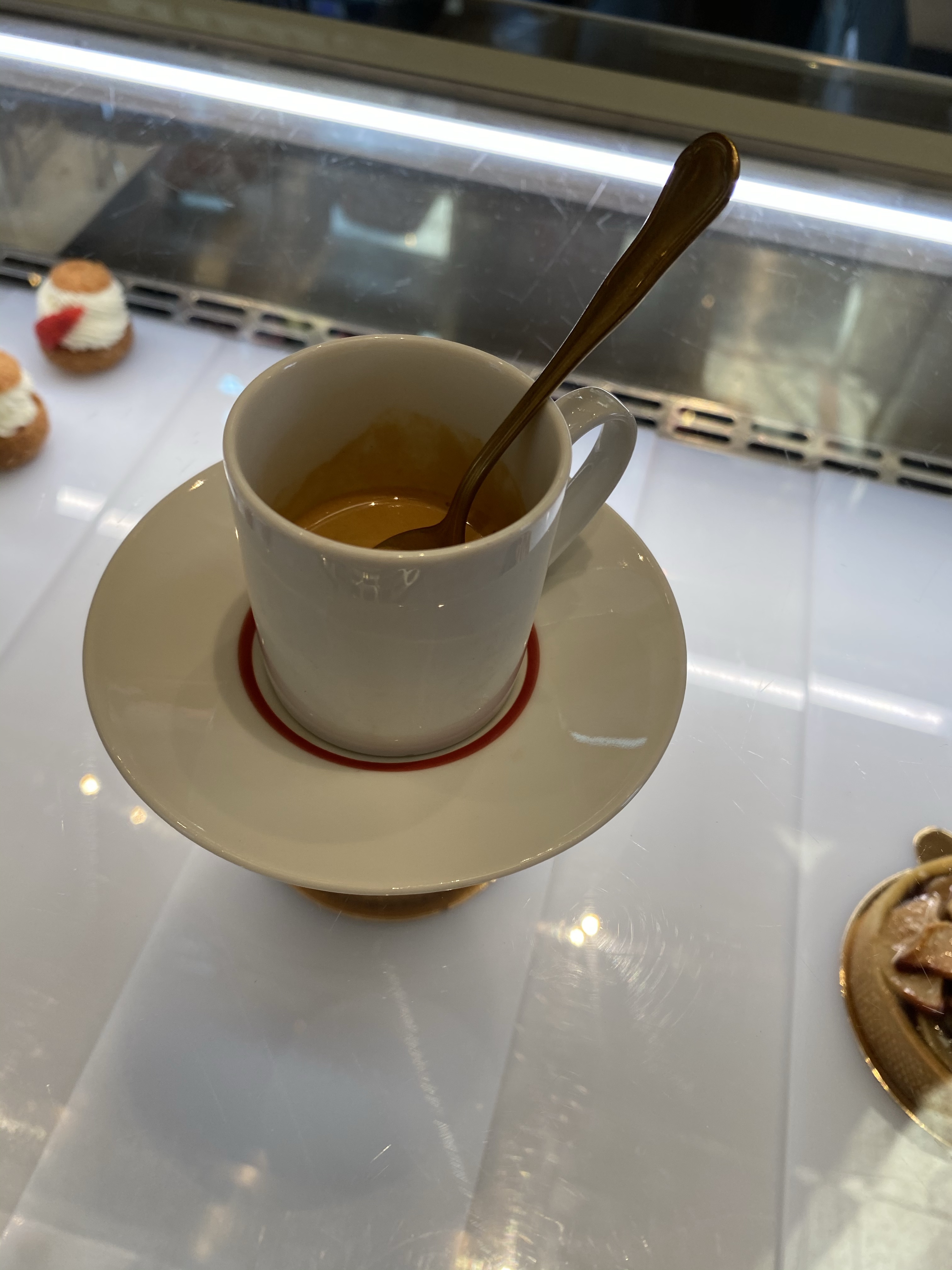Von hier sind wir dann in Richtung „Scala“ das hiesige Opernhaus marschiert. Das war aber schon nicht mehr zu besichtigen. Direkt daneben war aber ein Café und da habe ich den Tip von Jan mal ausprobiert. Café bzw. Espresso an der Bar bestellen zum direkt trinken. Dann greift irgend eine Regelung in Italien und es ist Mega billig. Lecker Espresso für 1,30€.