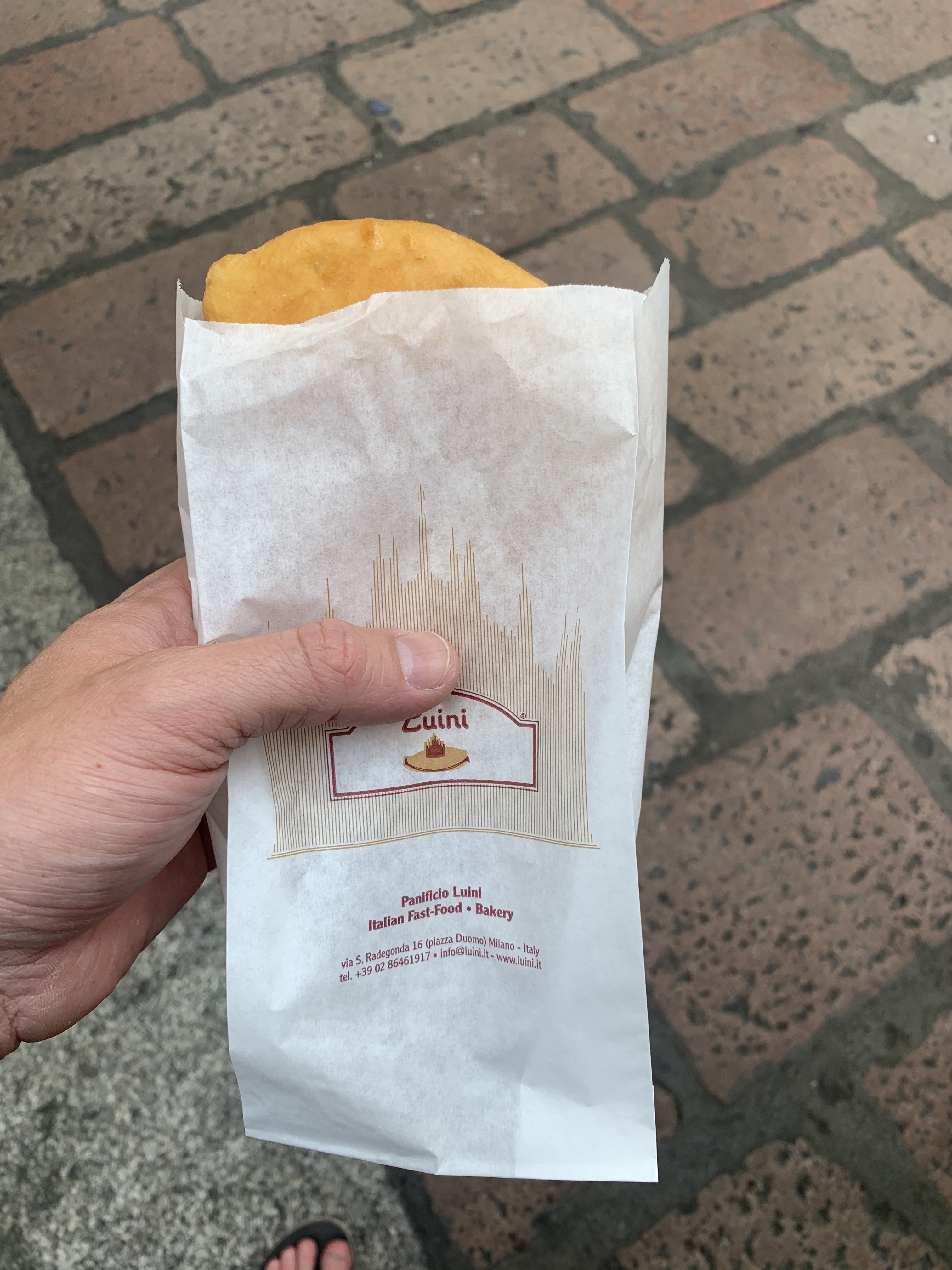 Ohne Stau und große Aufregung ging es in 4,5h nach Mailand und dort ins gebuchte AirBnB. Sehr zentral gelegen, circa 3 Minuten von der Kathedrale, um lange Laufwege zu vermeiden. Hier haben wir uns nur kurz frisch gemacht und sind dann los gezogen um Mailand zu erkunden. Erster Anlaufpunkt war das Panzerotti Luini für eine kleine Stärkung. Kräppelchenteig gefüllt mit Pizza Zutaten. Am Anfang etwas merkwürdig aber dann echt gut.