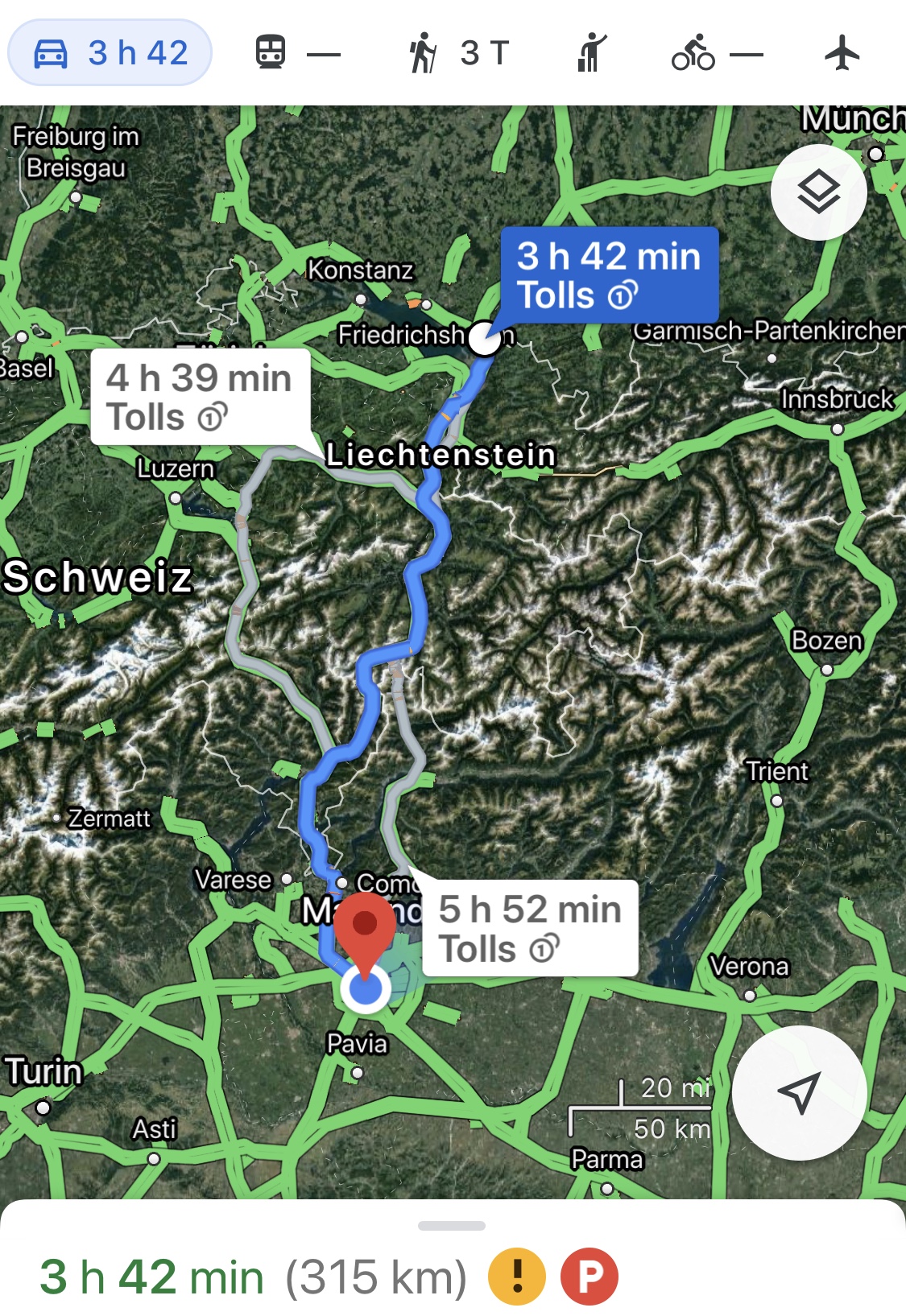 Heute ging es dann nun endlich, nach einem leckeren Frühstück, los in Richtung Italien. Diese Strecke bin ich schon ein paar mal gefahren… aber bisher nur dienstlich. Umso angenehmer war es natürlich dieses Mal.