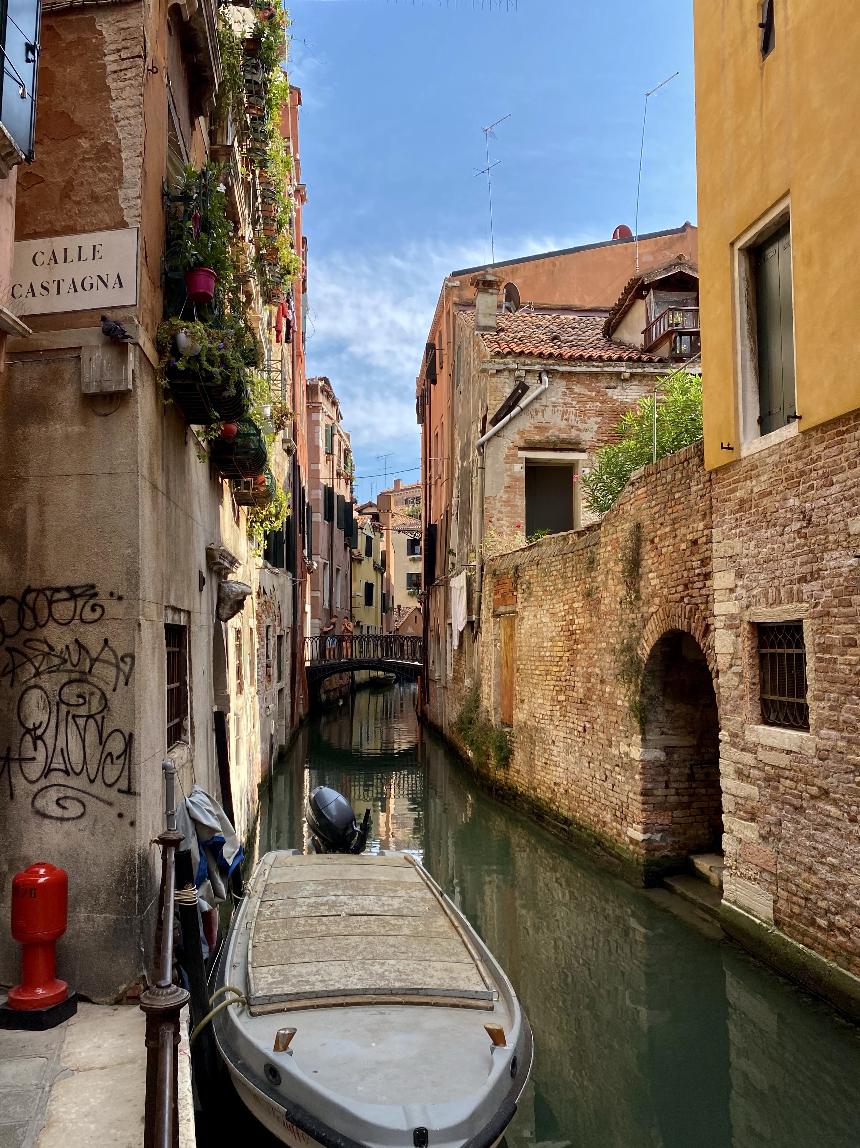 Nach nur drei Stunde sind wir am vorher gebuchten Parkplatz vor Venedig angekommen, glücklicherweise einen Parkplatz im Schatten gefunden, Tickets für die Fähre abgeholt (war im Preis inbegriffen) und dann ging es auch schon los in Richtung Venedig. Dies haben wir dann im Speedrun durchgezogen… in unter zwei Stunden einmal zu Fuß durch Venedig.