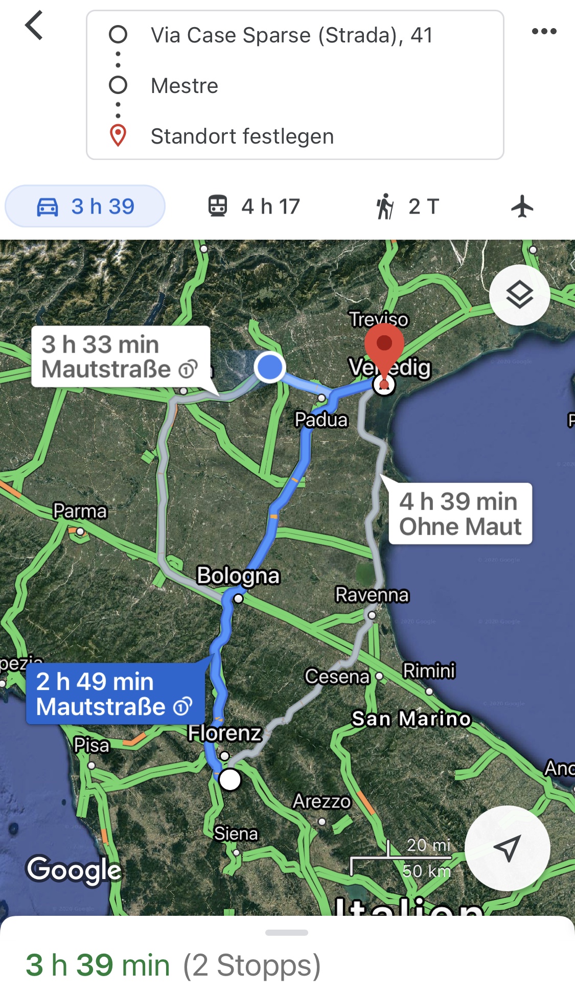 Heute mussten wir also schweren Herzens Abschied von unserem AirBnB nehmen. So sind wir dann in aller früh um 09:00 Uhr morgens in Richtung Venedig aufgebrochen.