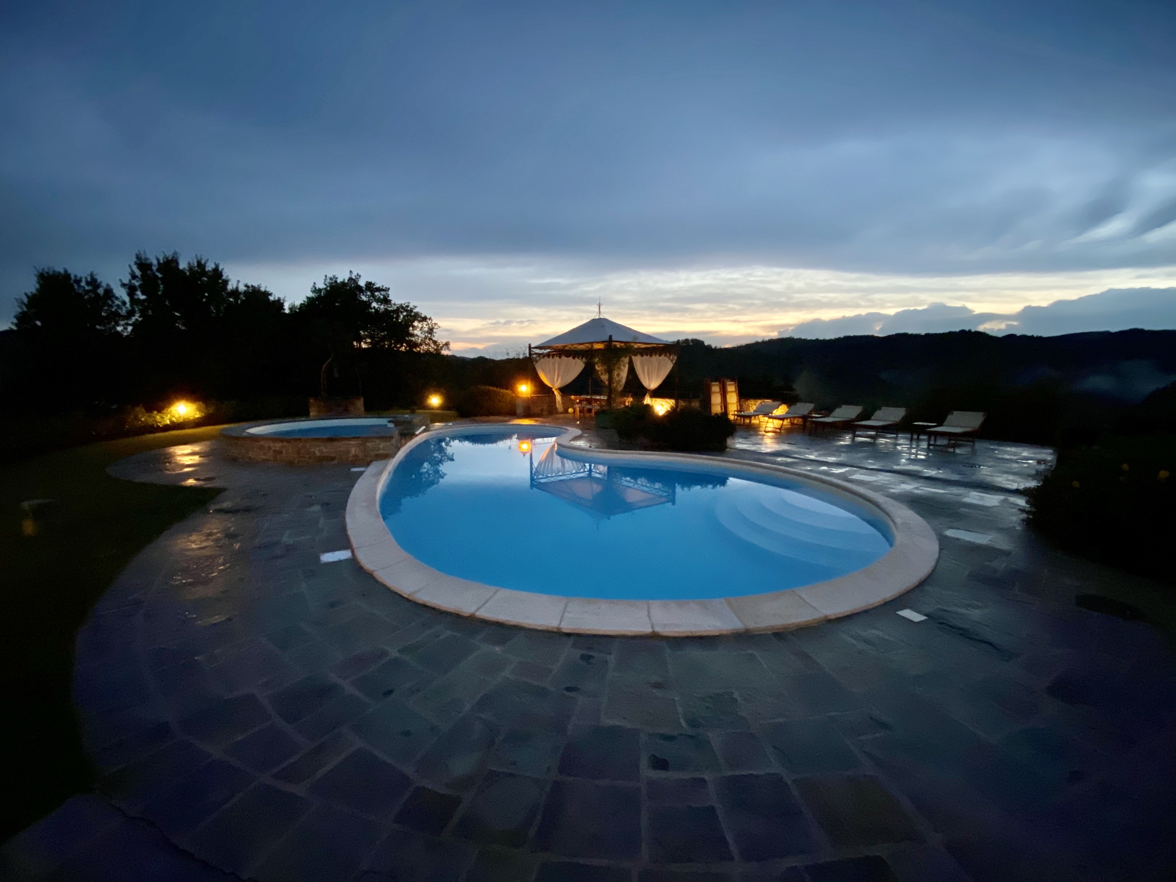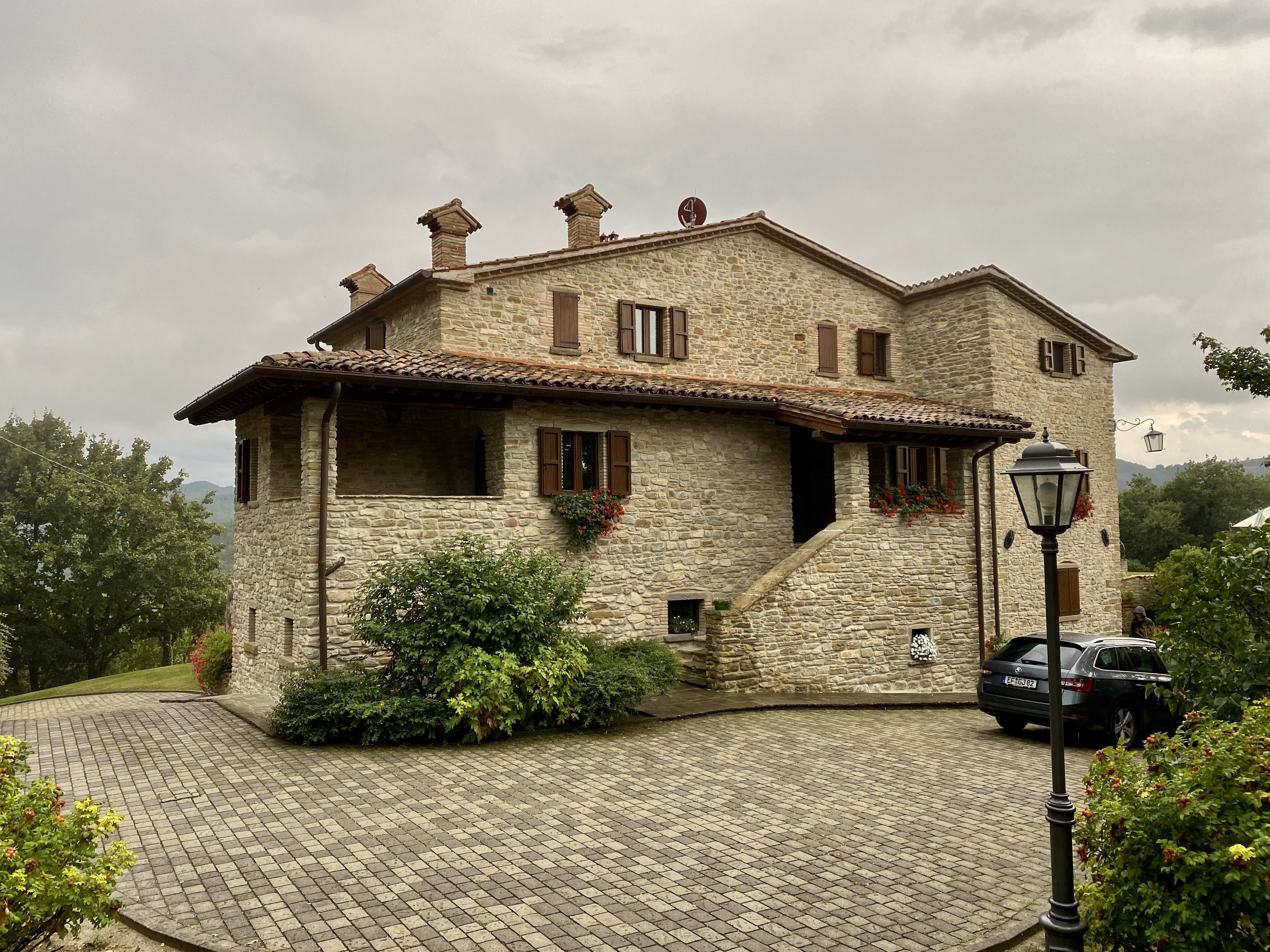 Von hier ging es dann mal wieder in den Supermarkt und dann weiter über die kurvigen Straßen zum AirBnB. Das letzte Stück war abenteuerlich… eine Privatstraße die sich sehr steil den Berg hinauf gewunden hat. Oben hat uns aber eine schöne Villa, mit Pool, nettem Ausblick und großem Garten erwartet. Wir haben natürlich nicht das ganze Ding gebucht, sondern nur eine kleine Unterkunft in derselbigen. Man fühlt sich ein wenig wie im Mittelalter.