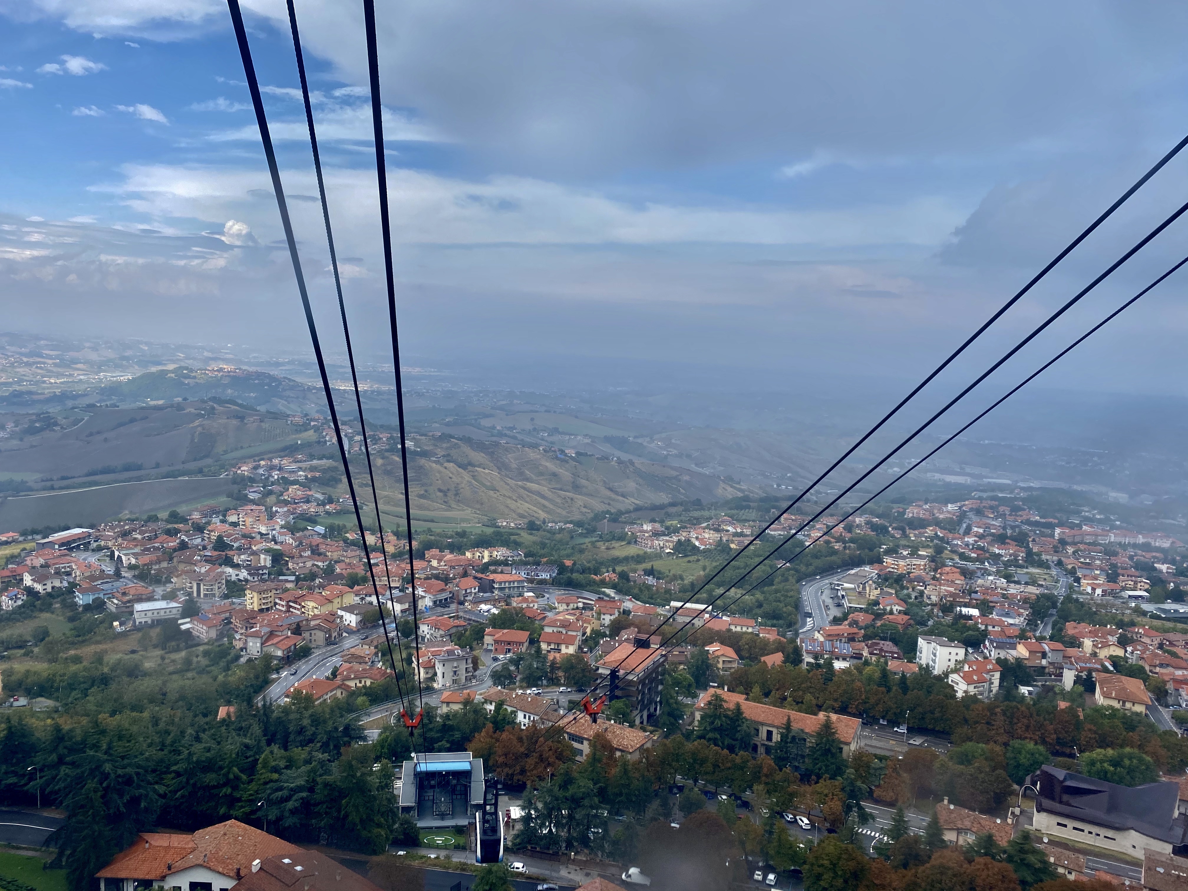 In San Marino sind wir nicht in die Stadt San Marino gefahren, sondern haben in „Borgo Maggiore“ auf dem Parkplatz „Parcheggio Schola Elementare“ geparkt. Der Parplatz der Grundschule also… der ist kostenlos und man darf hier parken. 🙂 Von hier sind es nur 5 Minuten zu Fuß bis zu einer Seilbahn, die einen für 4,50€ pro Person direkt nach San Marino in die Altstadt und auch wieder hinunter bringt.