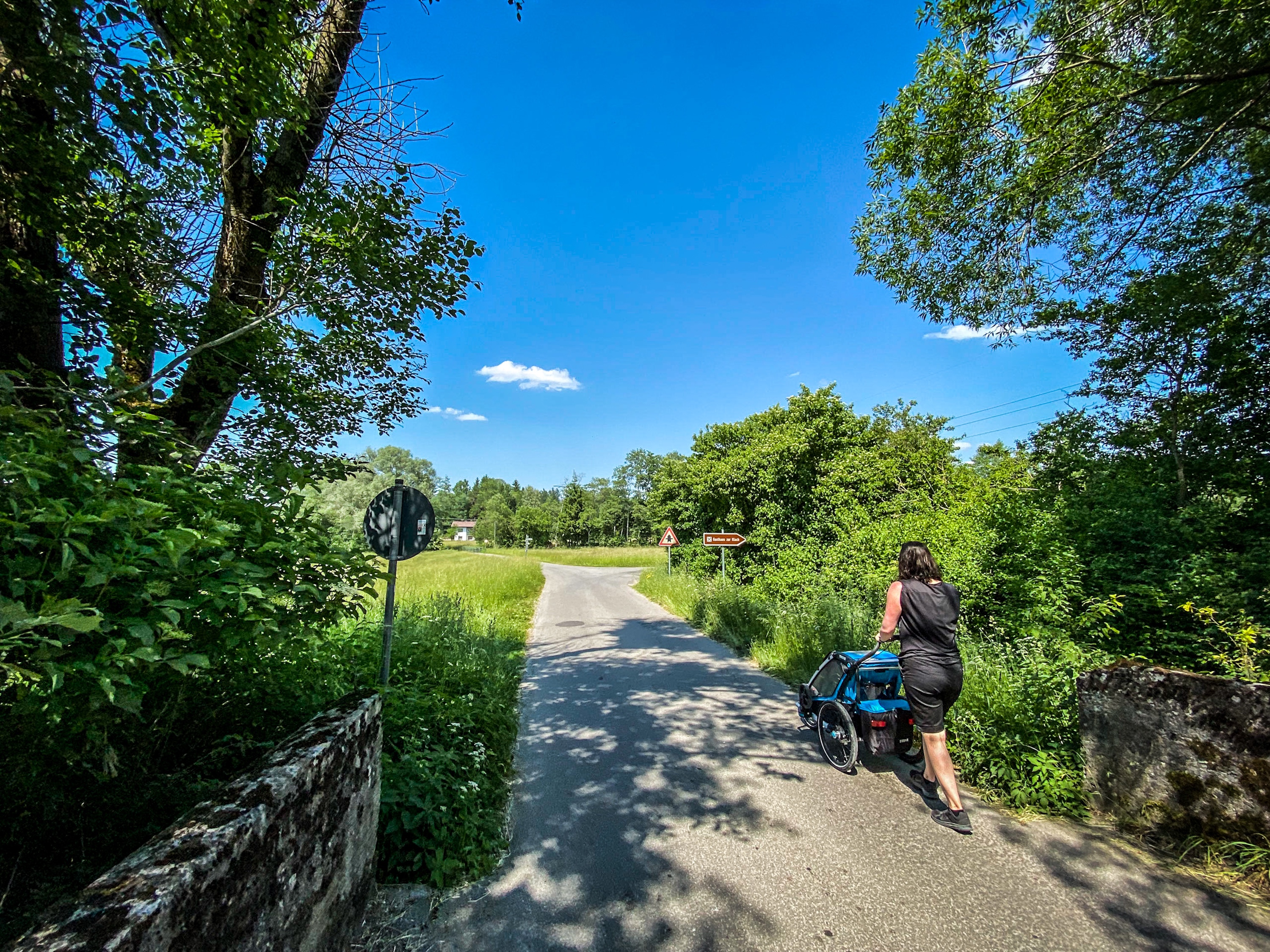 Rund 9 Kilometer und sehr angenehm zu laufen, auch mit dem Thule kein Thema. Das einzige was etwas anstrengend war, war die Tatsache das es hier quasi keinen Schatten gibt… also wurden wir schön langsam in der Sonne durchgebraten. Zum Glück hat Edgar dieses mal den Wagen akzeptiert (zumindest 95% der Strecke) sonst wäre es mit der Trage für uns alle ein noch heisseres Unterfangen geworden.
