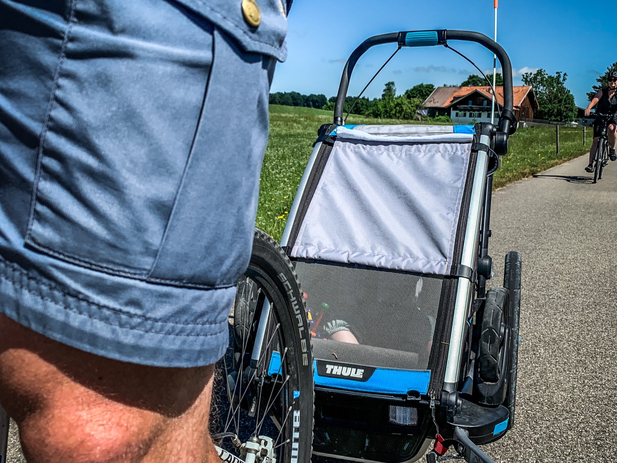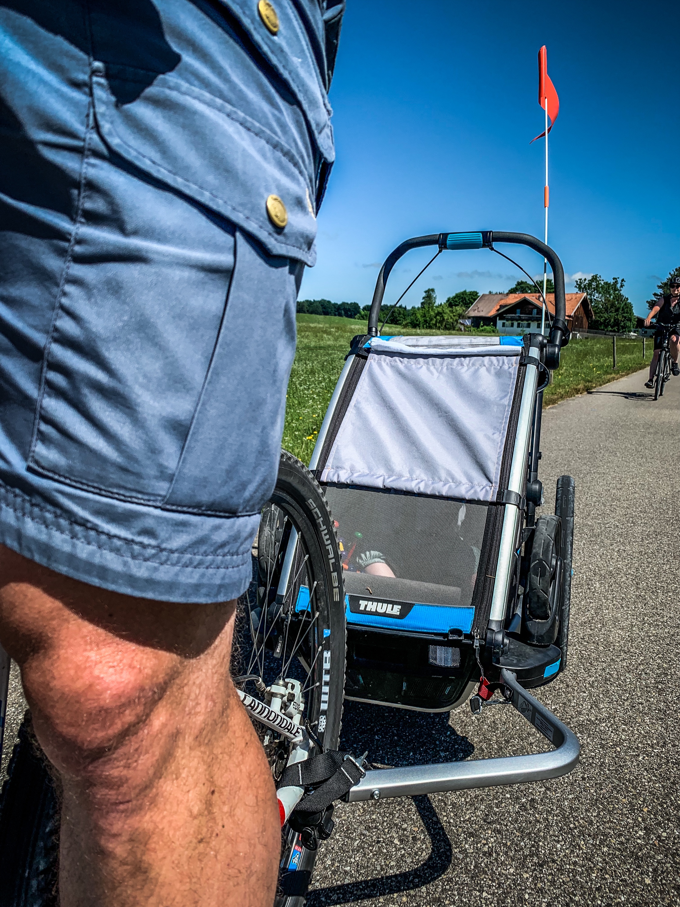 Radtour (persönliches Juhuuu!). Also raus auf die Drahtesel und los… am Anfang sind wir die Tour vom letzten Mal rückwärts gefahren. Das war mir irgendwie so nicht bewusst aber trotzdem ganz ok :-). Teilweise ist es hier doch recht hügelig und ich kann mal testen wie man mit dem Anhänger so die Anstiege hoch ballern kann. Tatsächlich geht es recht gut wenn man auf nicht trainierte Radfahrer (nicht E-Biker!) stößt… die kann man durchaus überholen oder zumindest dran bleiben. Das macht Spaß!