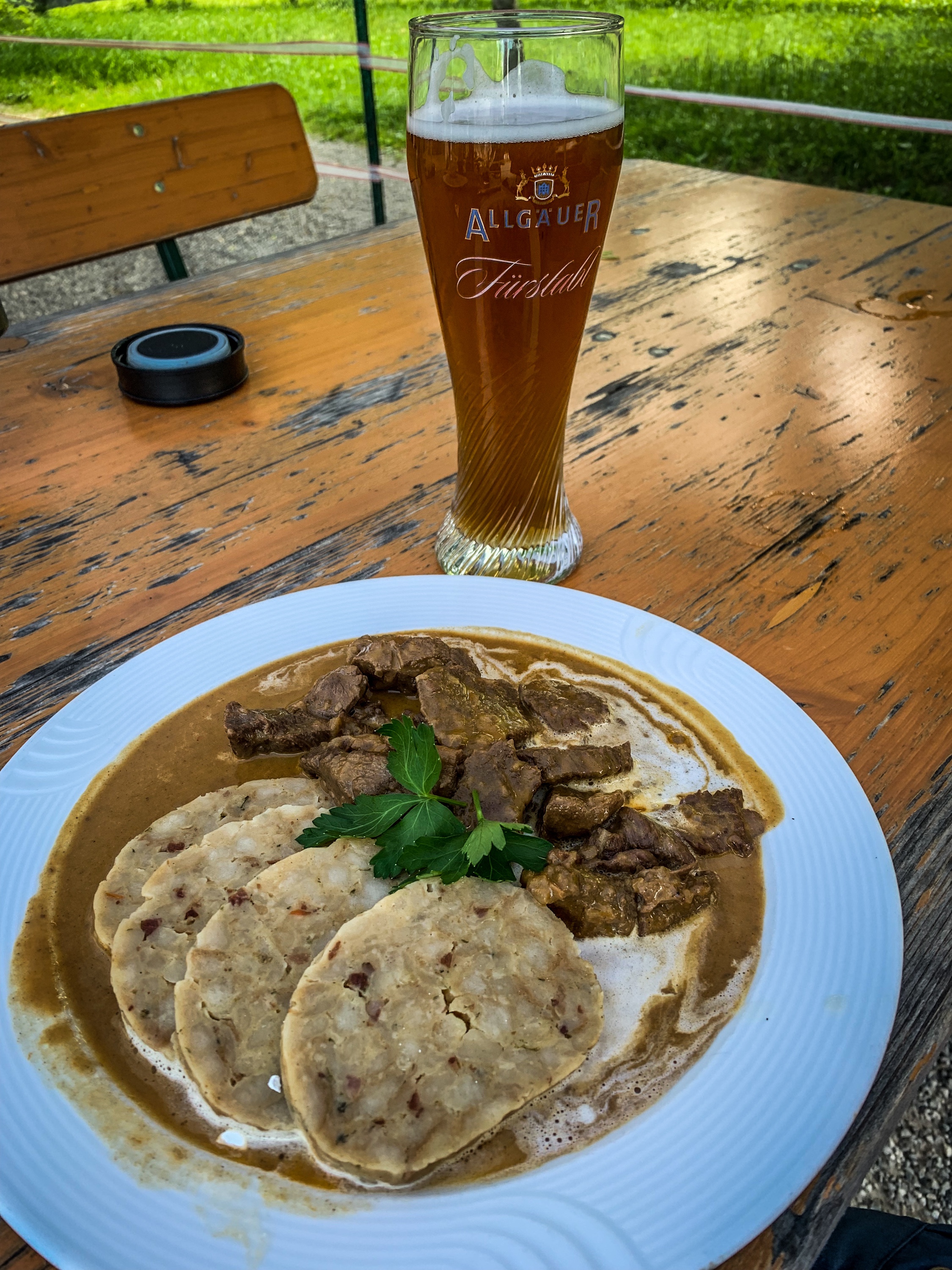 Eine Wirtschaft hatte ich nicht eingeplant da sich nix gescheites hat finden lassen bei Google. Aber glücklicherweise haben wir ziemlich zur Hälfte der Tour ein Schild erspäht welches auf die „Almstube“ verwies. Montag Ruhetag, passt also. Hier konnten wir dann eine schöne Pause mit Knödel und Spätzle machen um dann den Rest in Angriff zu nehmen.