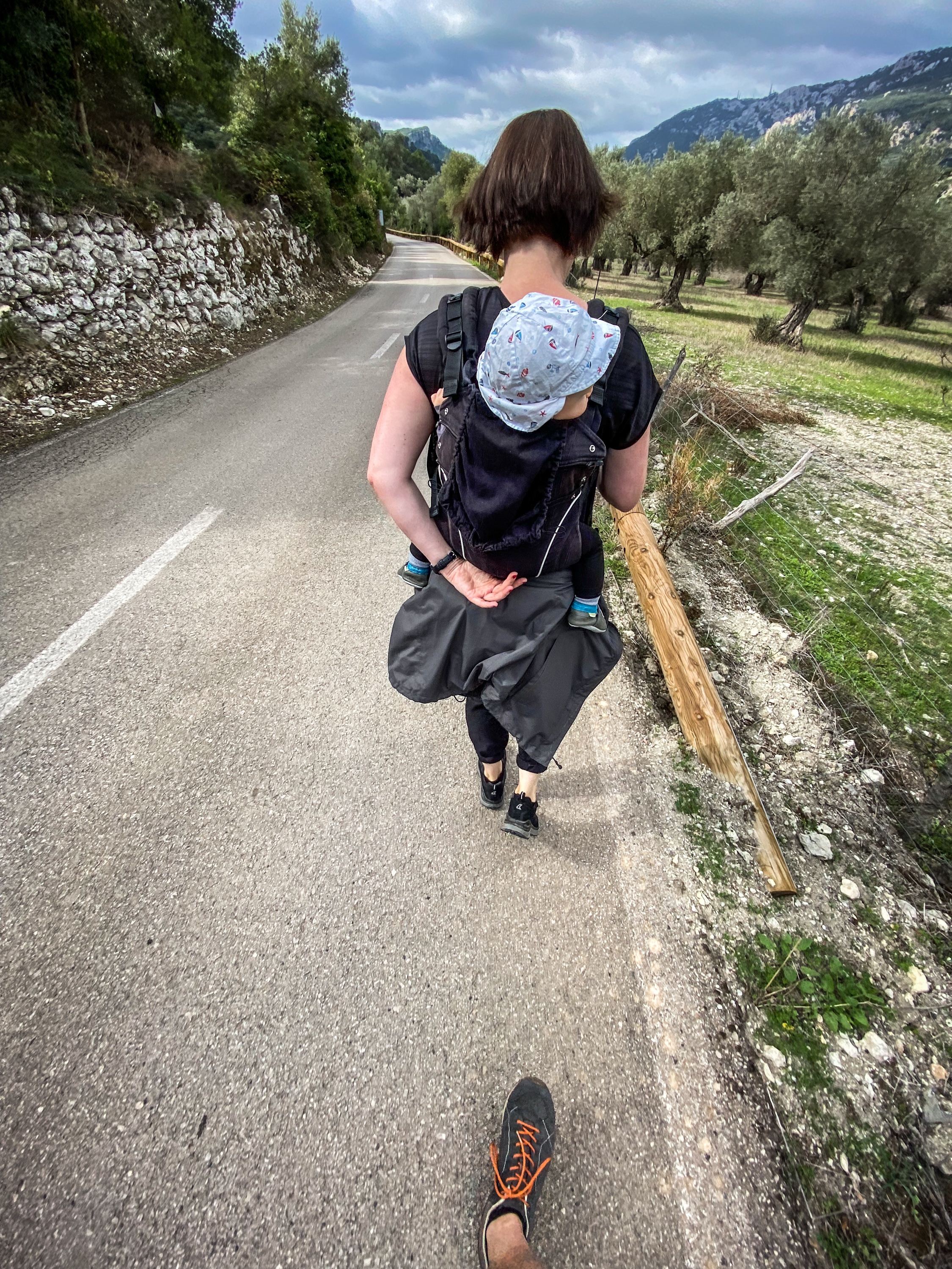 Das heutige Tagesziel war eine Wanderung bei Orient (ja, nicht im Orient) zum Castell d‘Alaro (https://www.komoot.de/smarttour/6082534?ref=itd). Zum Glück von uns aus nur 25 Minuten entfernt und somit schnell zu erreichen… also ging es mit dem Auto den Berg in viele Serpentinen und vorbei an unzähligen Radfahrern (soon….) bis zum Startpunkt. Dort die Wanderschuhe geschnürt, Edgar geschultert und ab auf die Wanderung.